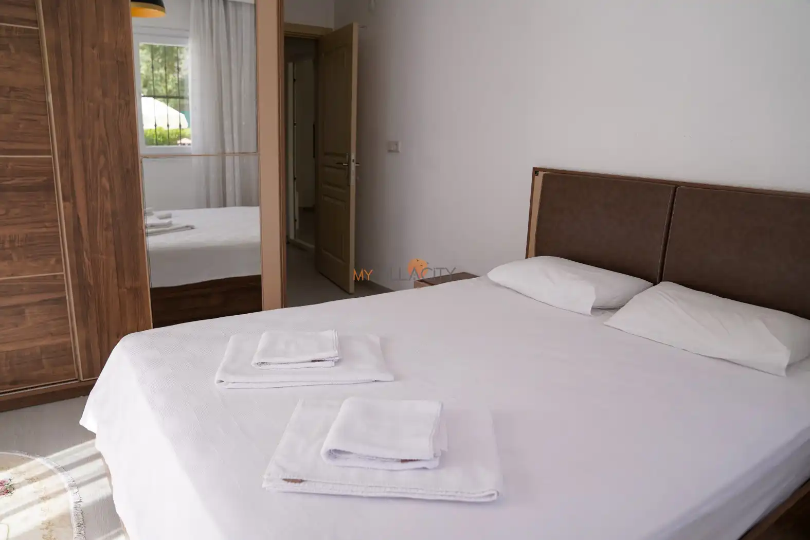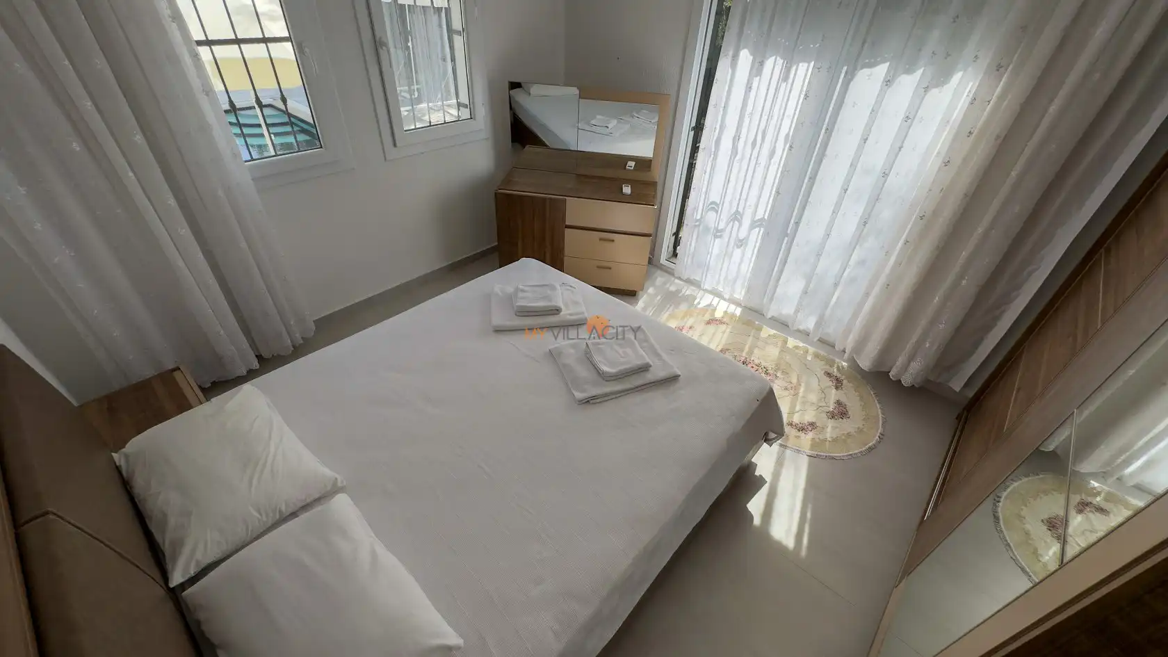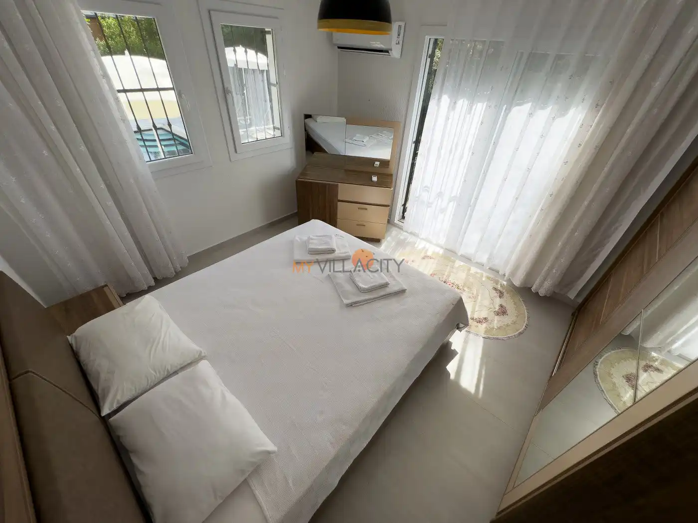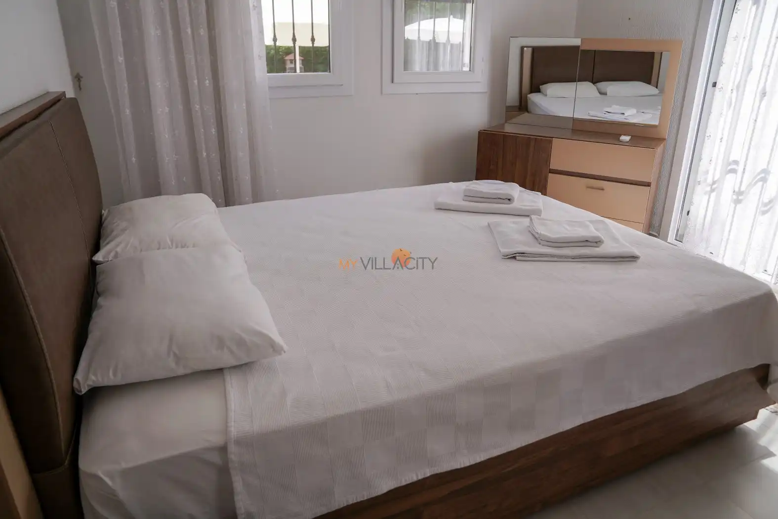 - 1 Çift Kişilik Yatak, 1 Banyo/WC, 2 Komodin, Elbise dolabı, Makyaj Masası, Klima,
