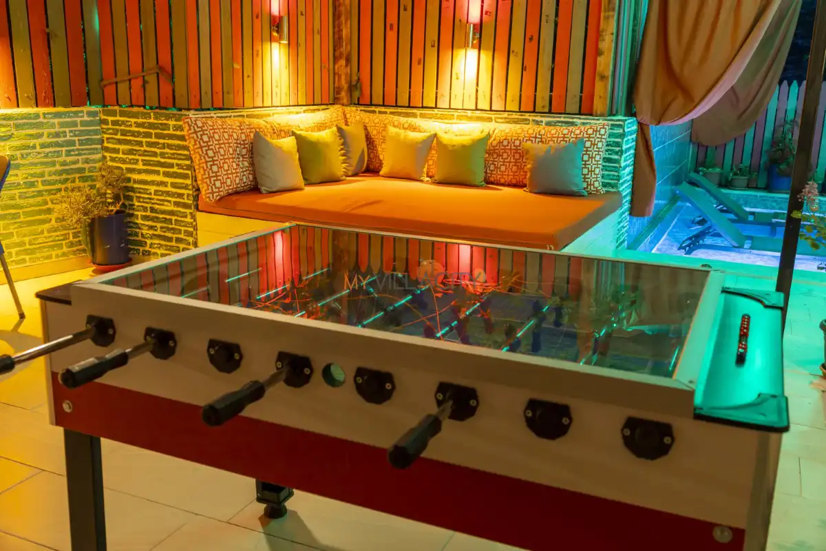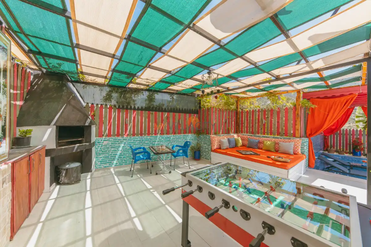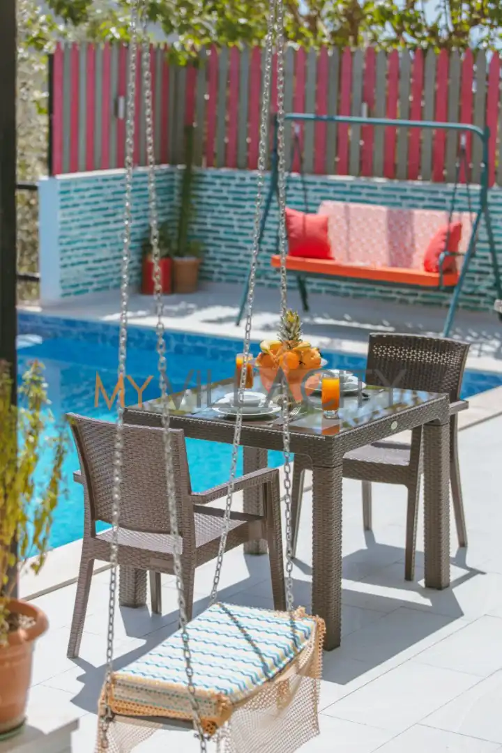Villanın geniş ve korunaklı bahçe alanında özel yüzme havuzu, şezlonglar, güneş şemsiyeleri, hamak, langırt, masa tenisi, oturma köşesi ve yemek alanı yer almaktadır. Ayrıca barbekü alanı sayesinde açık havada keyifli yemekler hazırlayabilir, doğanın sakinliği eşliğinde unutulmaz anlar yaşayabilirsiniz.