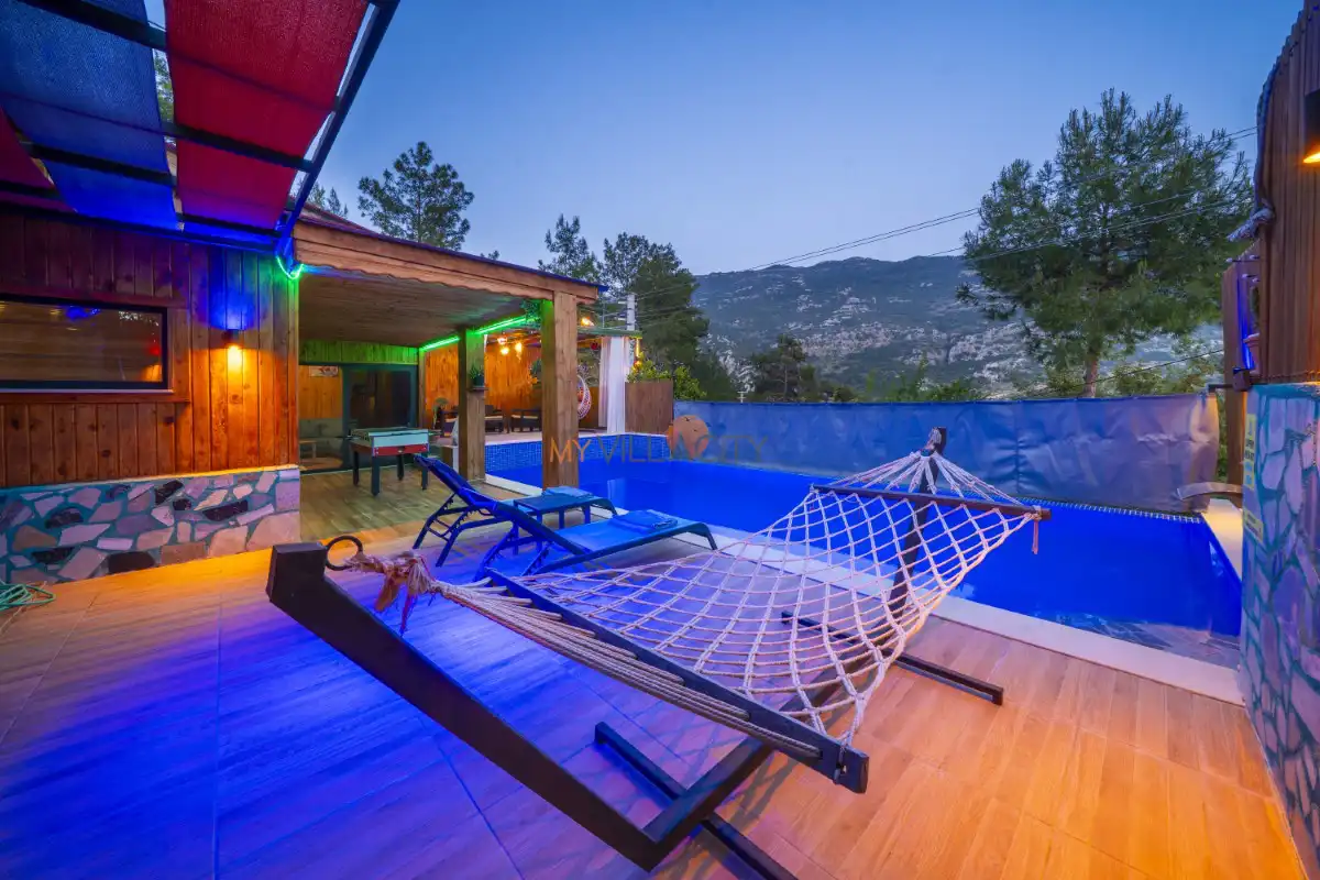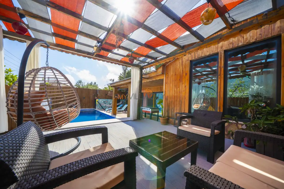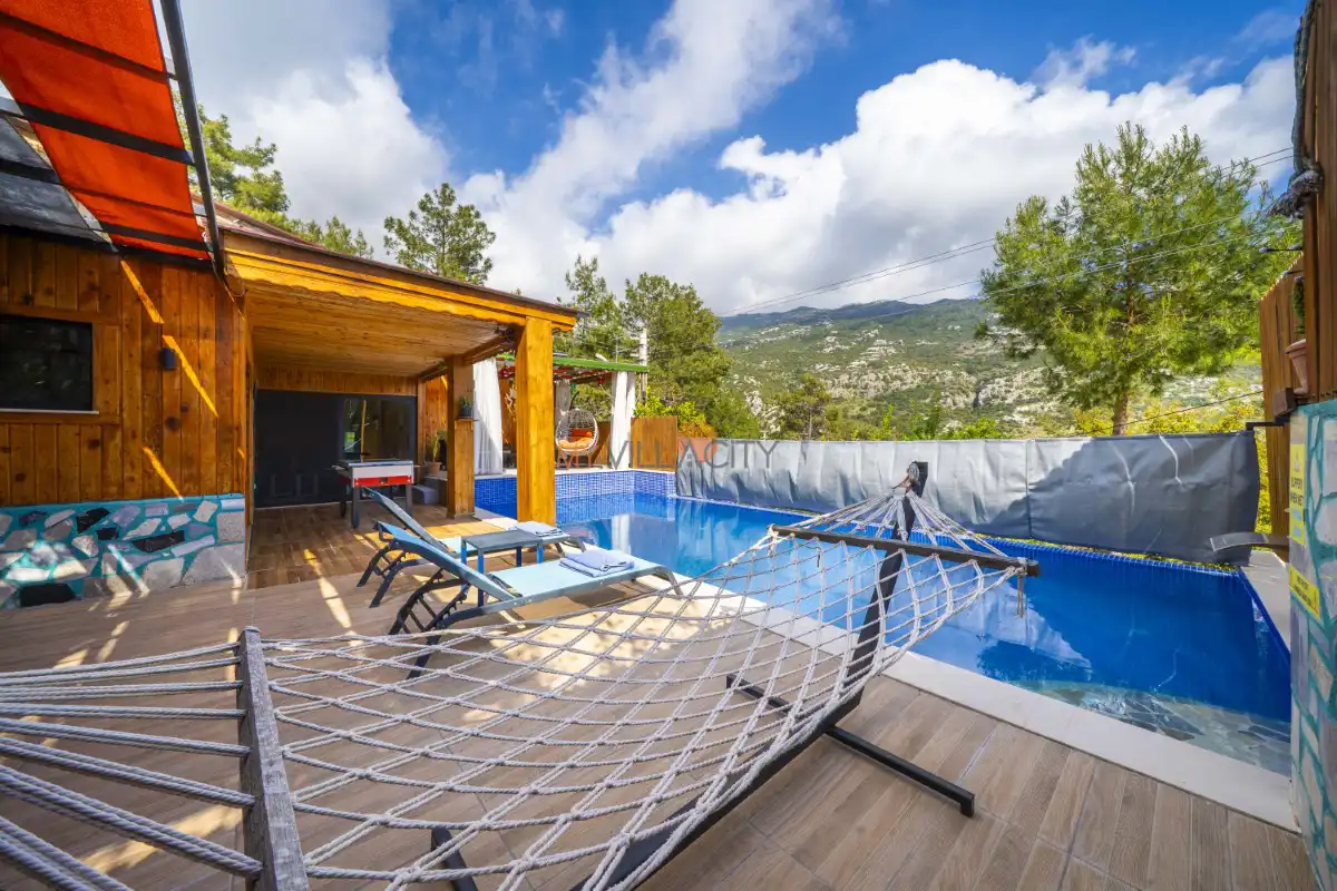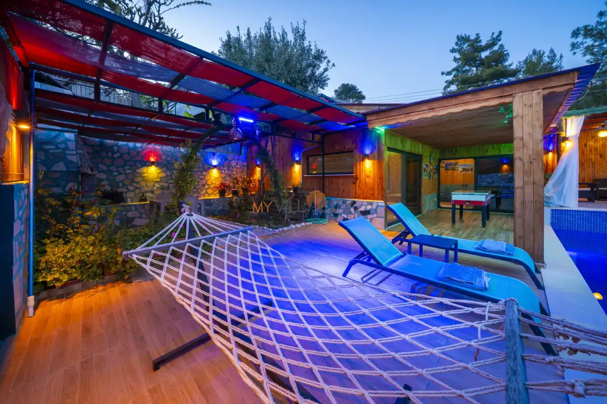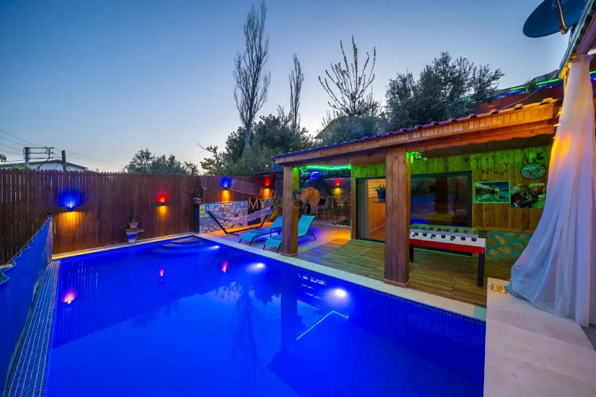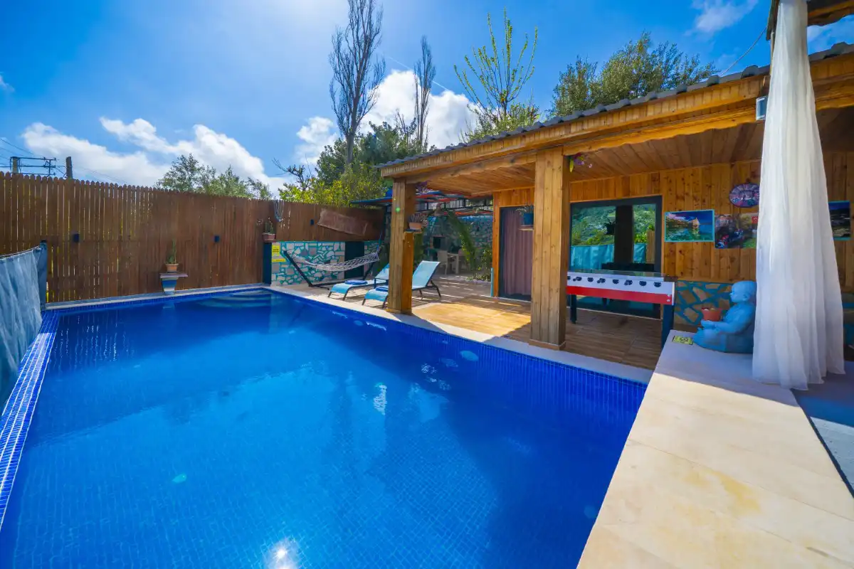 Mahremiyetin ön planda tutulduğu korunaklı havuz alanı sayesinde dışarıdan görünmeyen bir yapıya sahip olan villa, muhafazakar tatil anlayışına uygunluğu ile öne çıkar. Doğa manzarası eşliğinde konumlanan özel yüzme havuzu, gün boyu güneşin ve sakinliğin tadını çıkarabileceğiniz huzurlu bir alan sunar. Havuz terasında yer alan şezlonglar, salıncak, mangal ve oturma alanları ise tatilinize keyif katacak detaylar arasında yer alır.