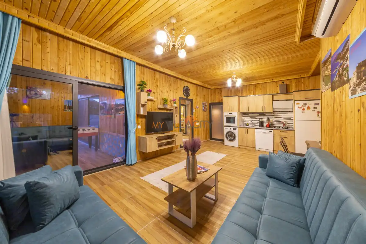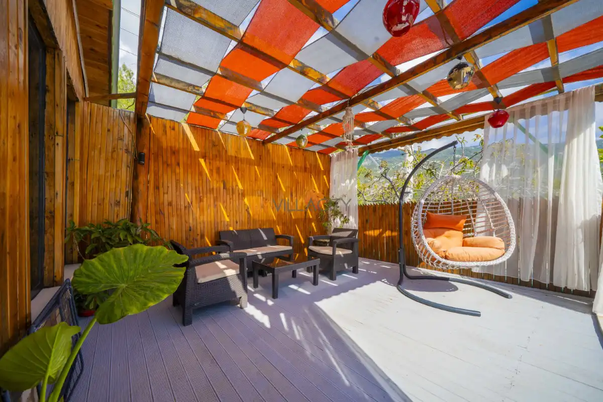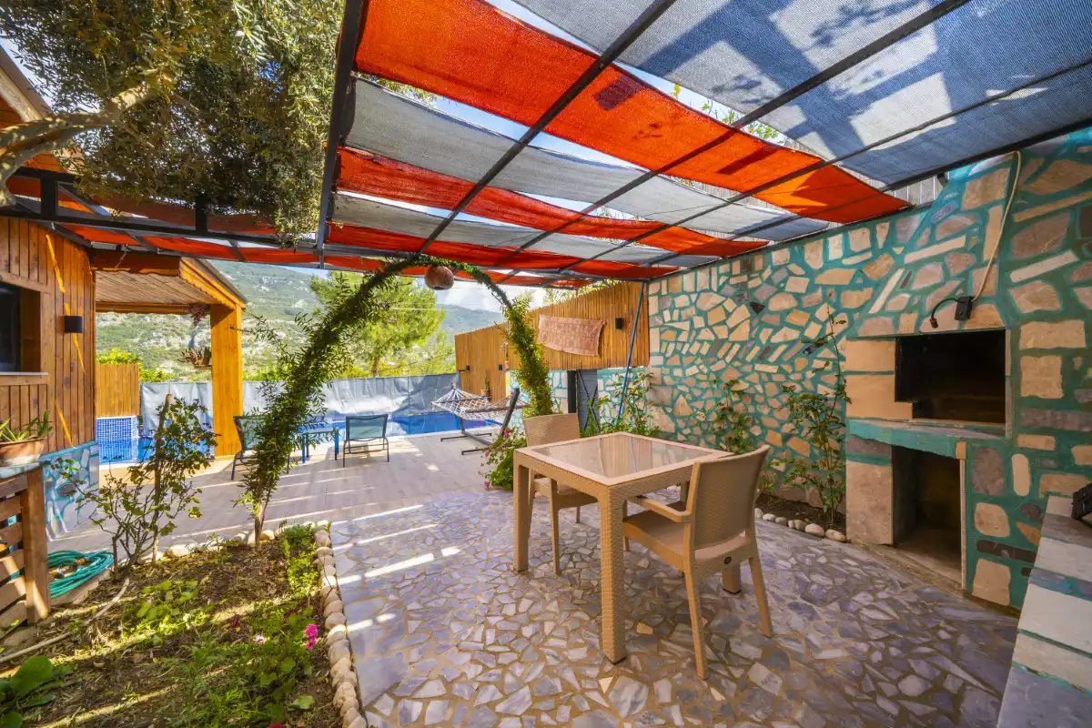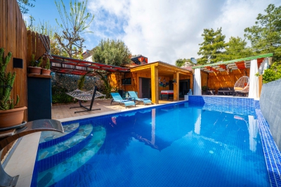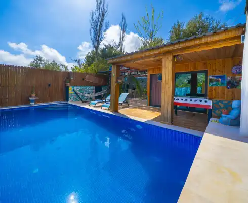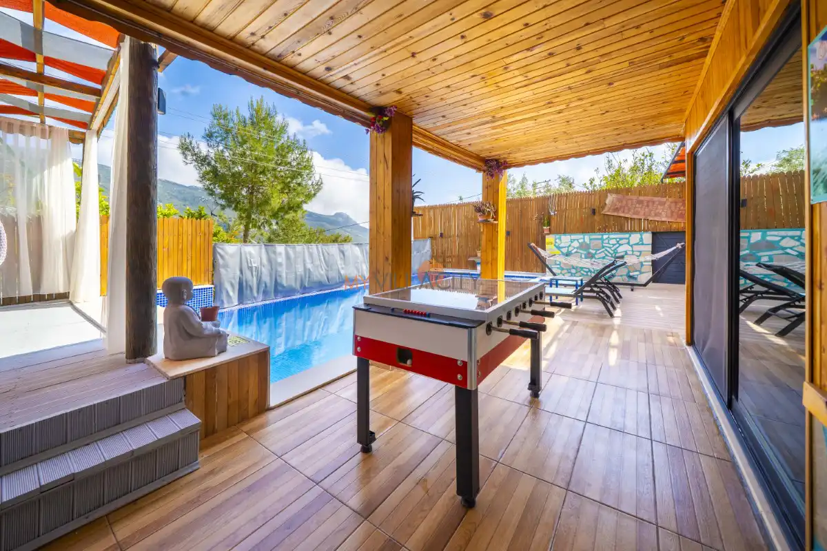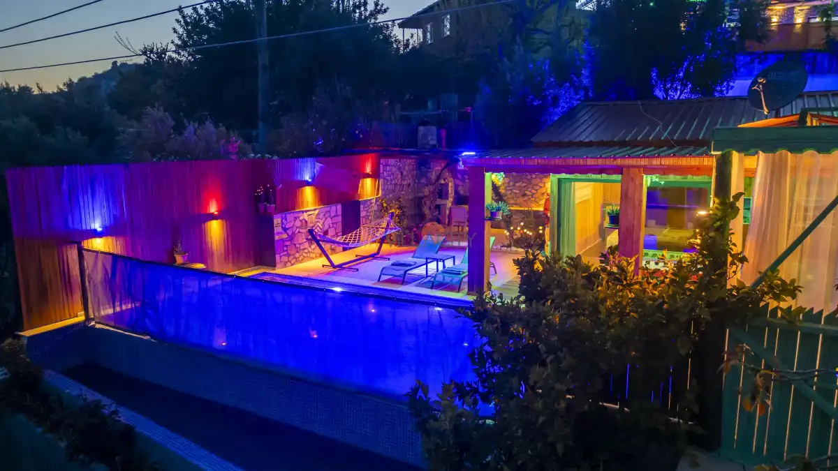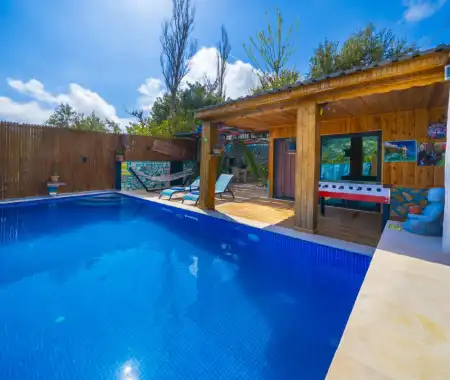 Mahremiyetin ön planda tutulduğu korunaklı havuz alanı sayesinde dışarıdan görünmeyen bir yapıya sahip olan villa, muhafazakar tatil anlayışına uygunluğu ile öne çıkar. Doğa manzarası eşliğinde konumlanan özel yüzme havuzu, gün boyu güneşin ve sakinliğin tadını çıkarabileceğiniz huzurlu bir alan sunar. Havuz terasında yer alan şezlonglar, salıncak, mangal ve oturma alanları ise tatilinize keyif katacak detaylar arasında yer alır.