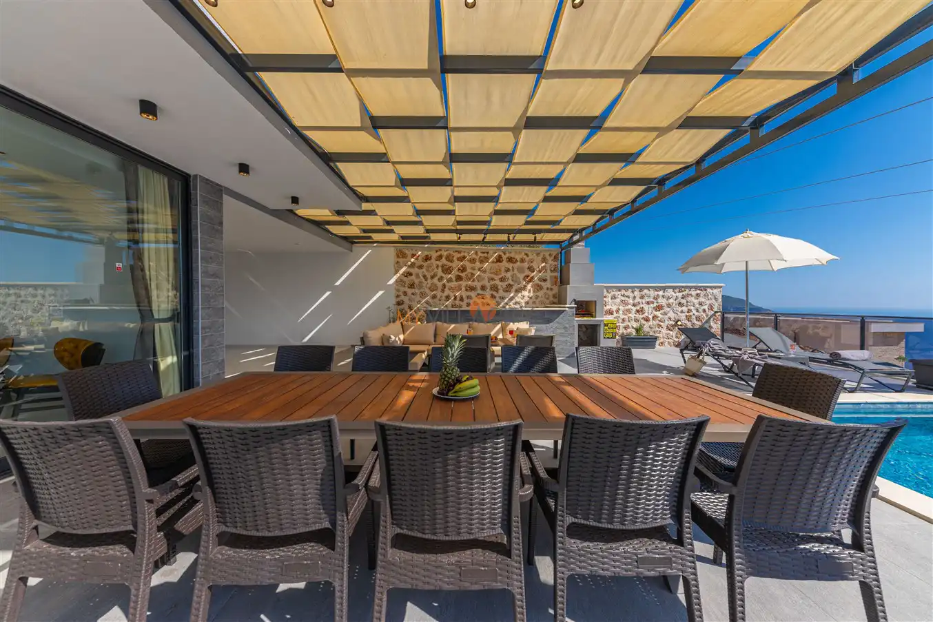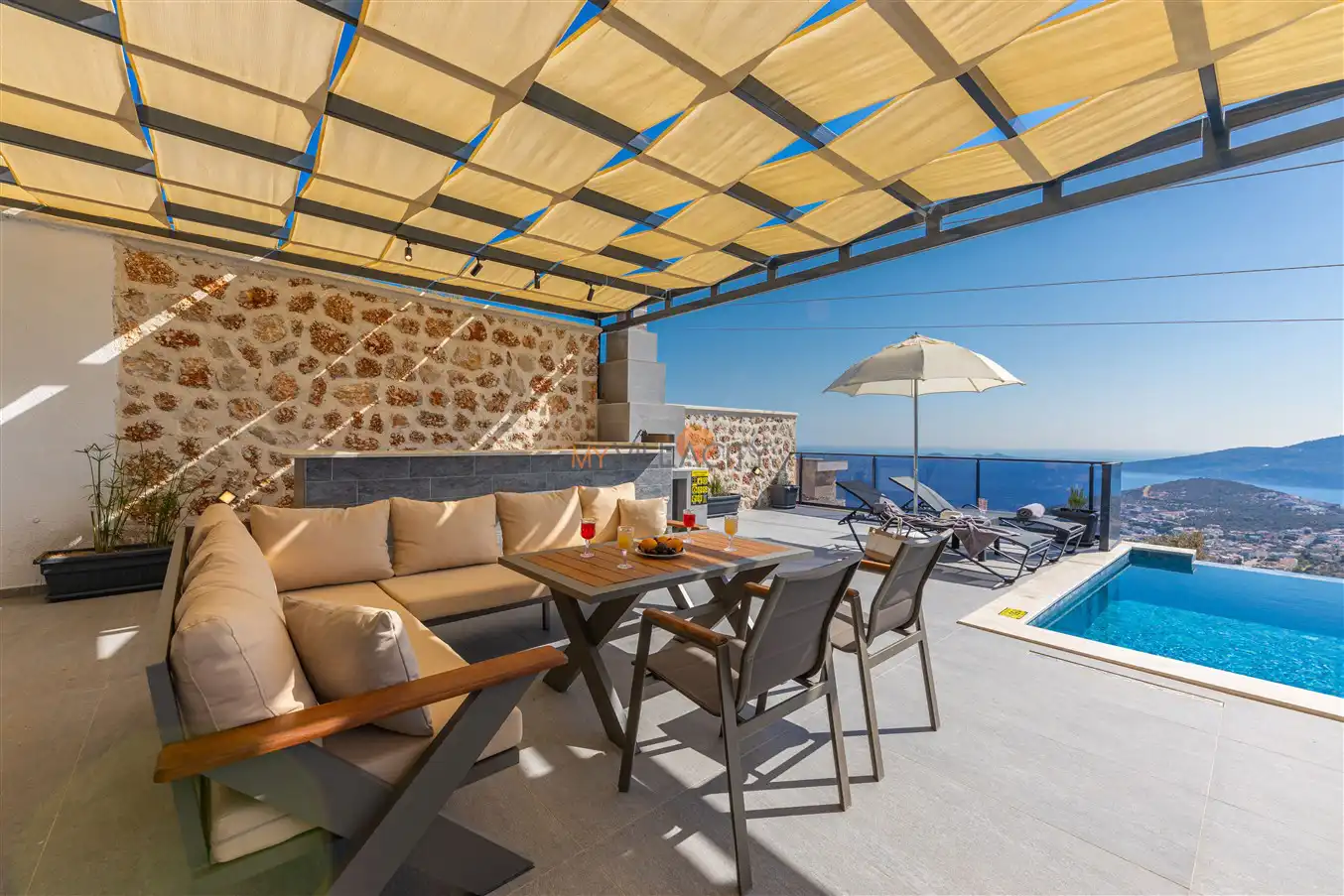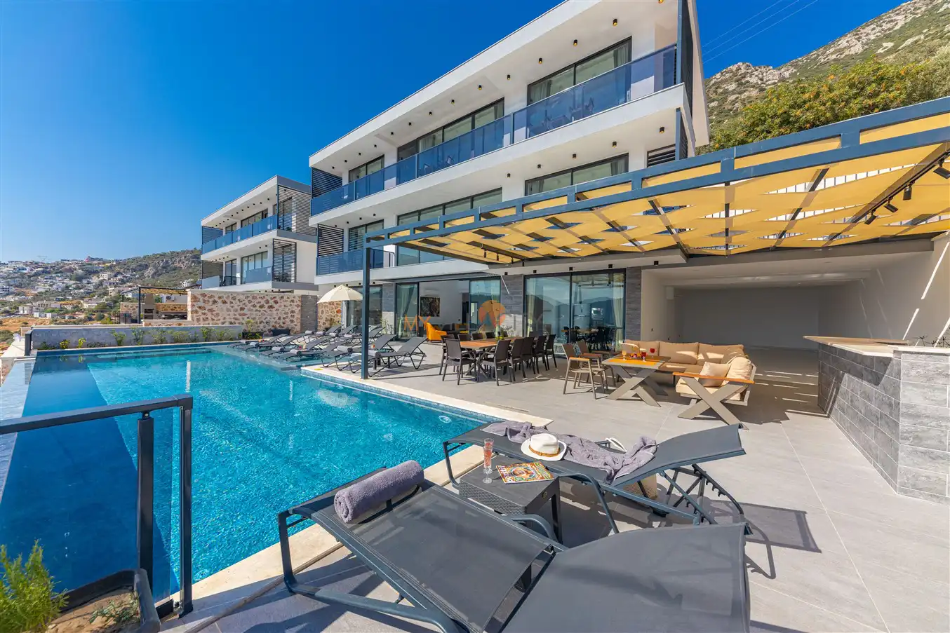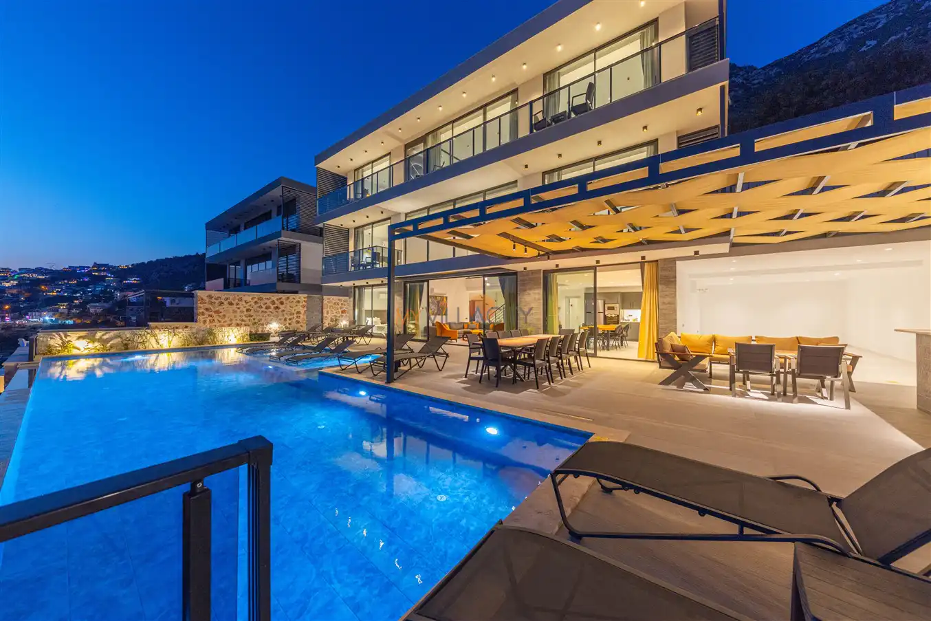 Villa Royal Falcon , Kaş Kalkana Bölgesinde yer almaktadır. Bu villa, 6 yatak odası ve 12 kişilik kapasiteye sahiptir. Kalabalık arkadaş grupları ve geniş aileler için ideal bir seçenektir.. Ana yatak odasında özel banyo ve tuvalet bulunmaktadır. Villamızın lüks ve konforlu tasarımı göz kamaştırmaktadır. Havuz terasımız oldukça geniştir ve bu alanda keyifli vakit geçirebilirsiniz.Ayrıca villamız,deniz manzarası ile iç içe olup ,sakin deniz manzarası sunmaktadır.Modern mobilyaları,şık dekarasyonu,şık dizaynırı ile ön plana çıkmaktadır.İhtiyaç duyabileceğiniz tüm temel araç ve gereçler villada mevcuttur. Eşsiz deniz manzarasına sahip olup, sakin ve huzurlu bir tatil isteyen misafirlerimiz için mükemmel bir seçimdir.