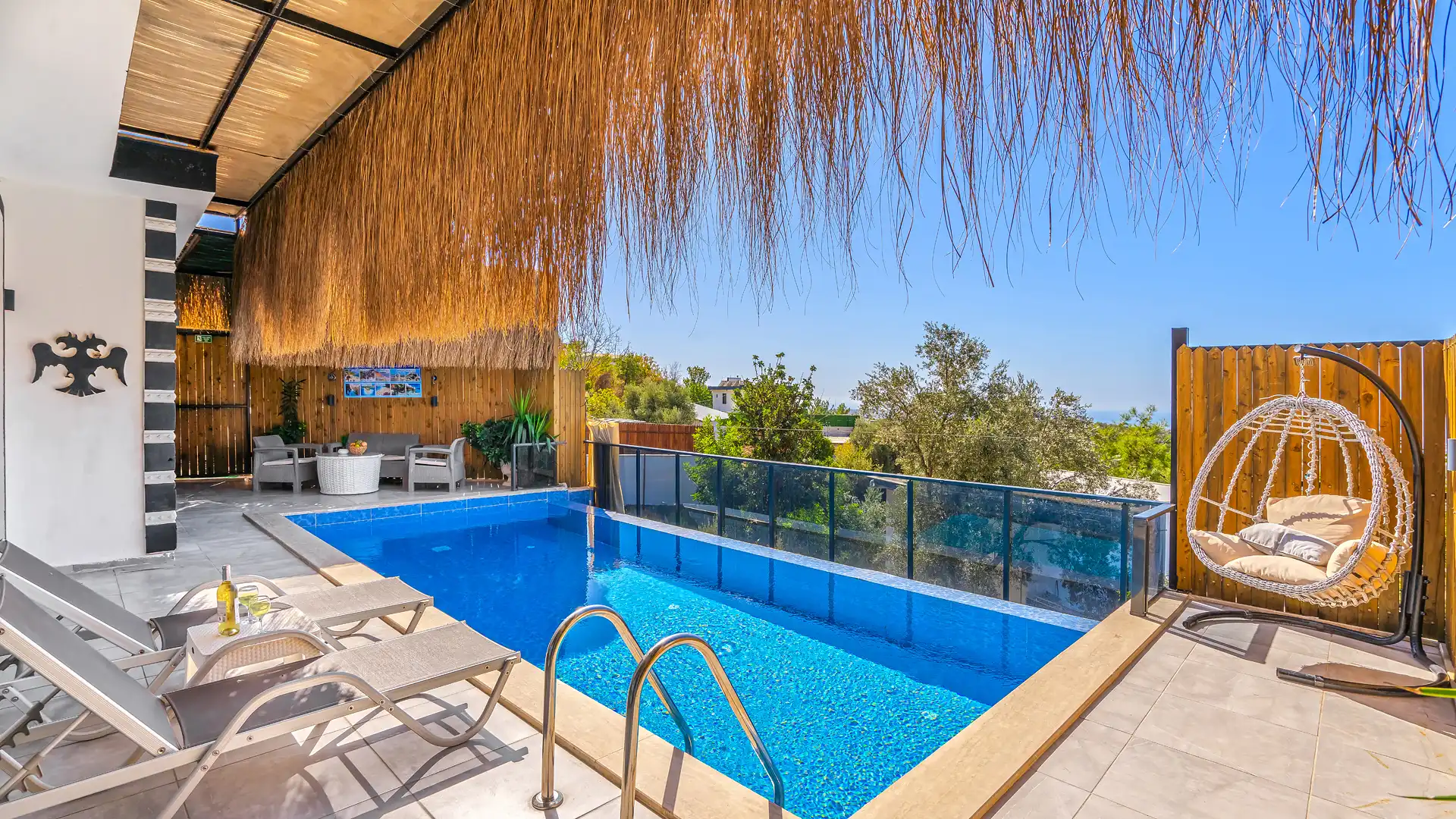 Villa Şahin 2, Kalkan'ın Üzümlü bölgesinde yer alan 1 yatak odası ile 2 kişi kapasiteye sahip tatil villamızdır. Bu şirin villamız sizin için romantik bir balayı tatilinin kapılarını aralamaktadır. Şık dekorasyonu ile dikkatleri üzerine çeken villamız konforlu eşyalarla dizayn edilmiştir. Yatak odasında tatilin vazgeçilmezi olan jakuzi bulunmaktadır. Villamızın salonu ve modern mutfağı tam donanıma sahiptir. Şehrin gürültüsünden uzak, muhafazakâr bir tatil geçirmek isteyen siz değerli misafirlerimiz için Villa Şahin 2 ideal seçeneklerdendir.