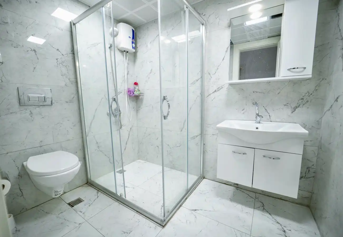 - 1 Çift Kişilik Yatak, 1 Banyo/WC, 2 Komodin, Elbise dolabı, Makyaj Masası, Klima,