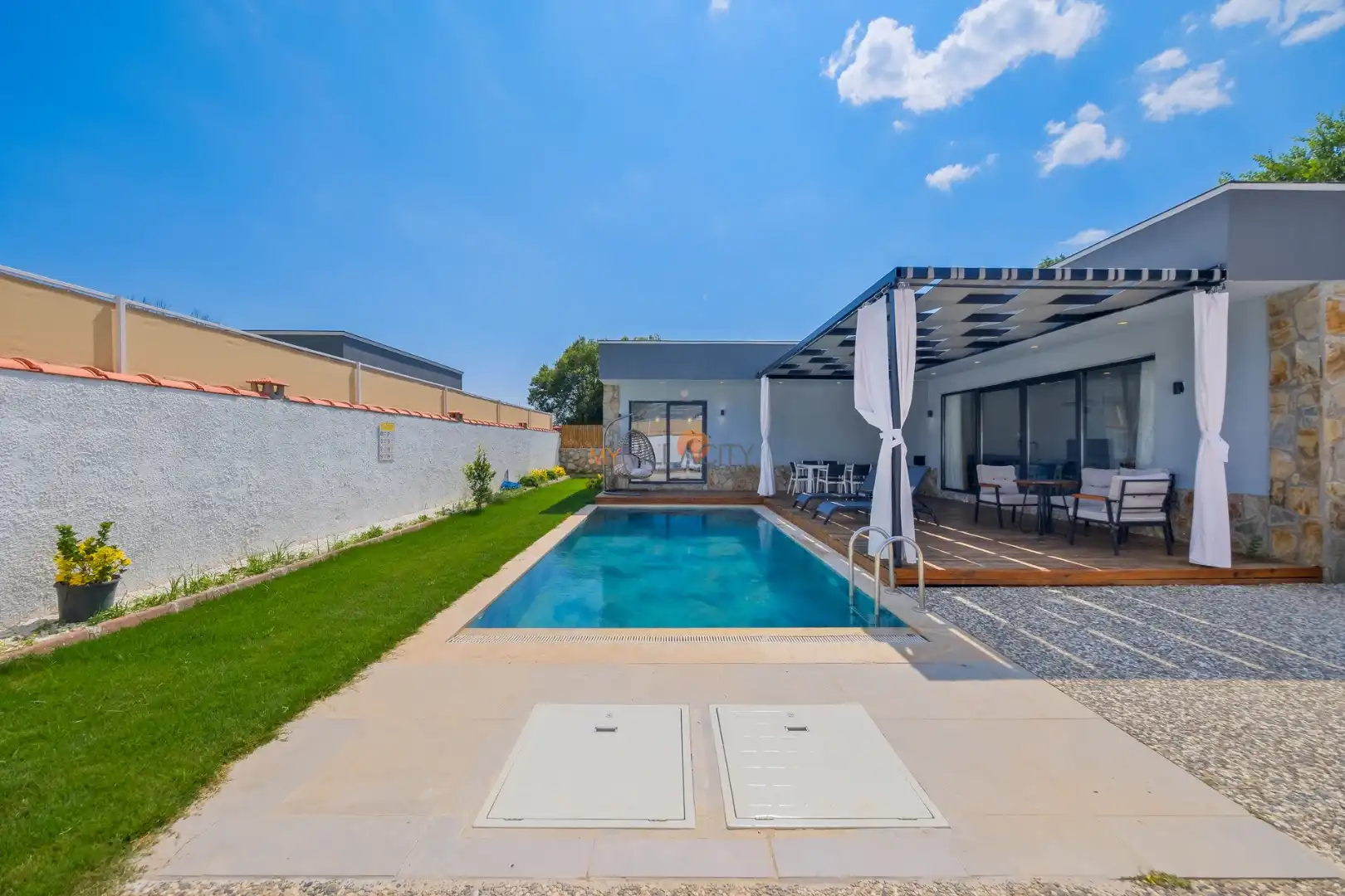 12-) Kiralayana ait resmî web sitesi (www.myvillacity.com.tr, info@myvillacity.com, ‘’ myvillacity ‘’ kullanıcı isimli resmi instagram, facebook ve twitter hesabı ve bu kanallarda belirtilen telefon numaraları) dışında aynı veya benzer isim kullanmak suretiyle kiralayana ait logo vb. işaretlerin kullanılması ve hileli işlemlere maruz kalınması halinde kiralayan sorumluluk kabul etmez. Bu sebeple rezervasyon yaptırma aşamasında güvenilir ve doğru adres ile iletişime geçmeniz önemle rica olunur.
