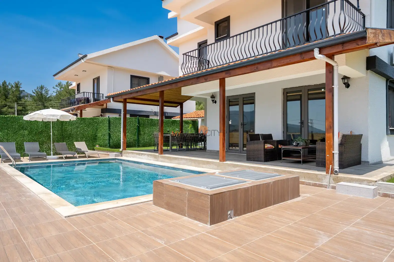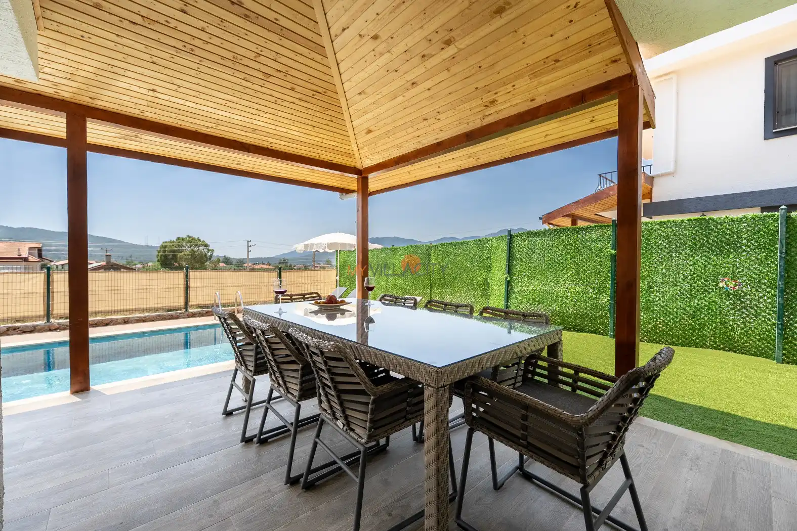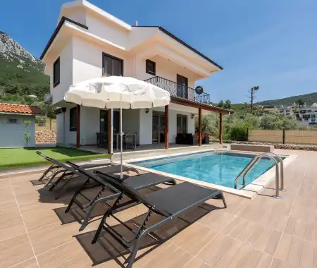 Villa Sinemis , Yeşilüzümlü muhteşem doğasına sırtını yaslamış, özel havuzlu ve modern donanımlı bir tatil villasıdır.Villamız şık dizaynı ile ön plana çıkmaktadır içerisinde . Aileler ve geniş aileler için mükemmel bir kaçış noktası sunan bu villa, Kaş ve Fethiye'nin tarihi ve doğal güzelliklerine kolay erişim sağlar. Tam donanımlı mutfak, geniş teraslar ve huzurlu bir bahçe, Villa Sinemis kendi evinizdeki rahatlığı yaşayabileceğiniz bir yer haline getirir.