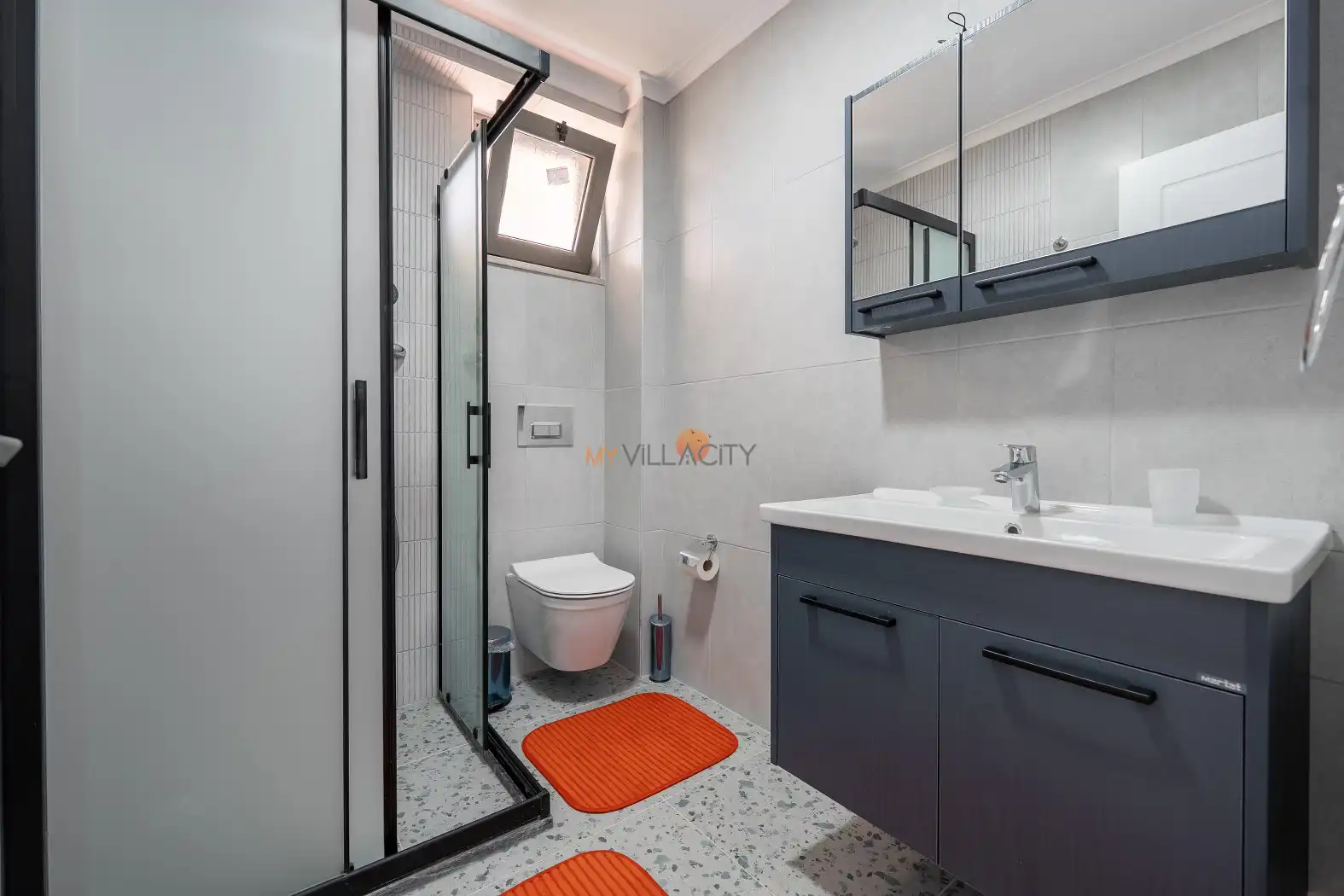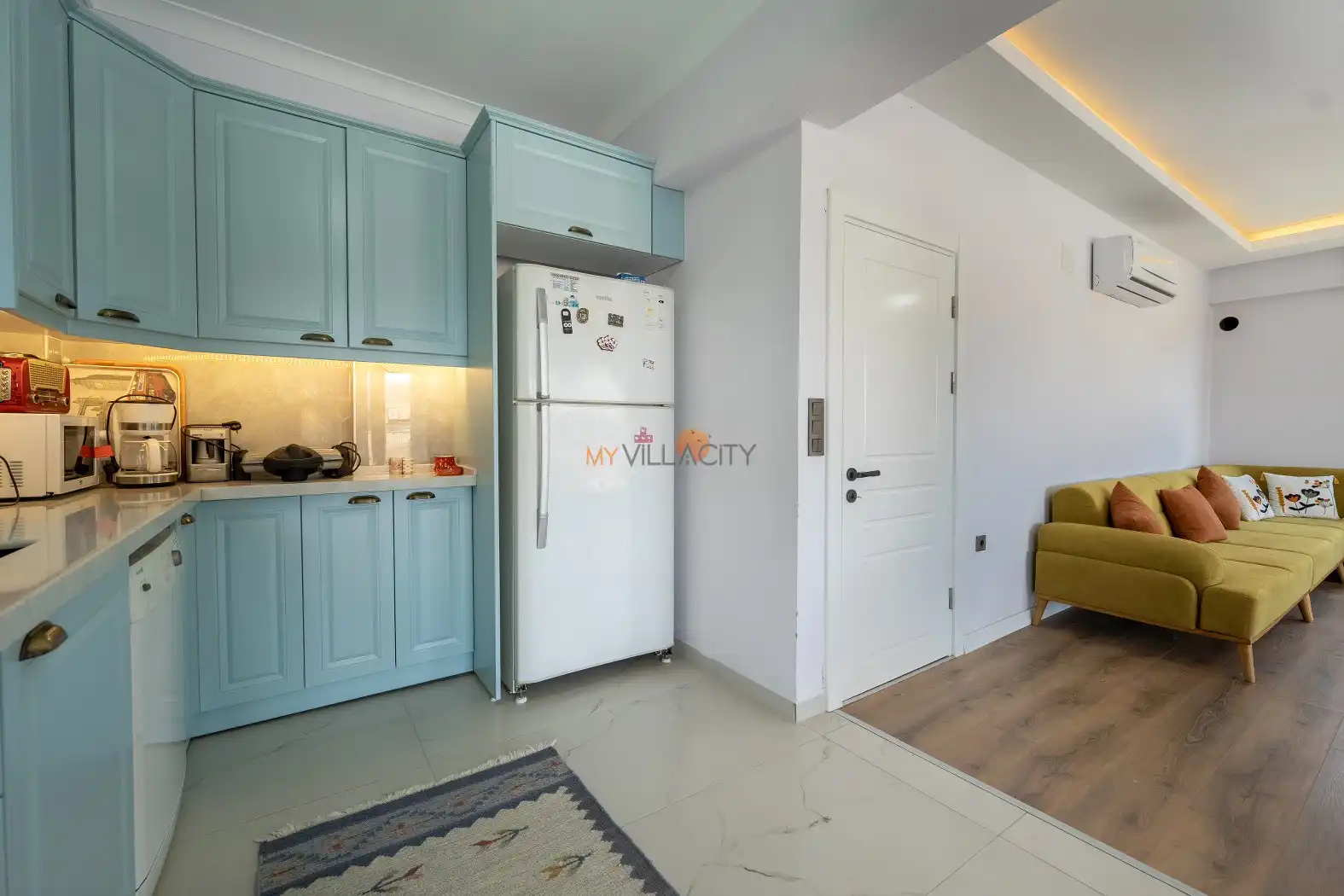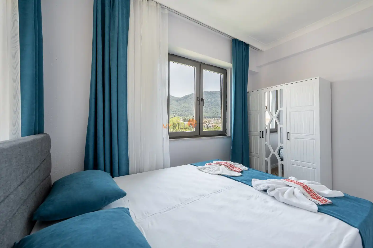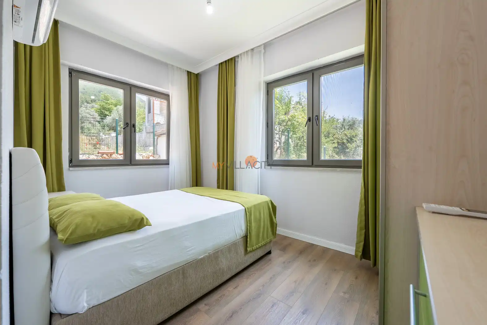 - 1 Çift Kişilik Yatak, 1 Banyo/WC, 2 Komodin, Elbise dolabı, Makyaj Masası, Klima,