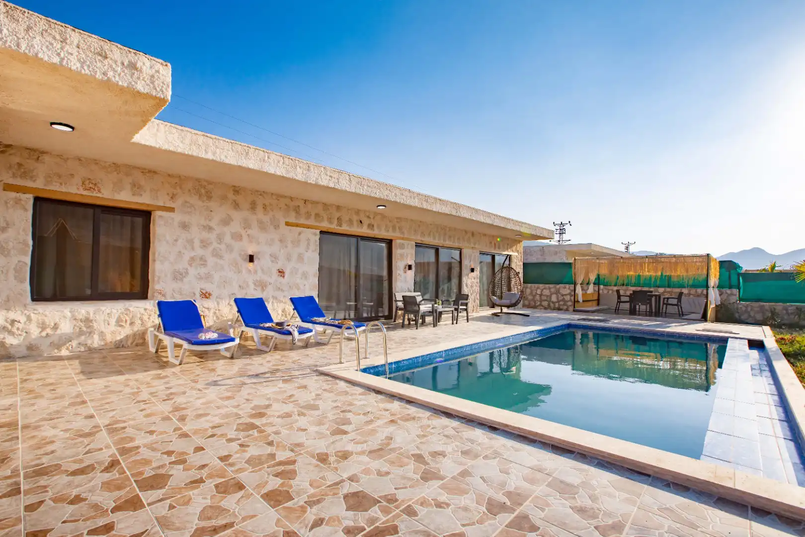 Kalkan'ın huzurlu köyü Sarıbelen'de bulunan Villa Sunflower, modern tasarımı ve özel havuzu ile dikkat çekiyor. doğa manzaralı konumu ile benzersiz bir tatil vaat ediyor. Tam donanımlı mutfak, geniş yaşam alanları ve konforlu yatak odalarıyla, unutulmaz bir Kalkan tatili için idealdir.