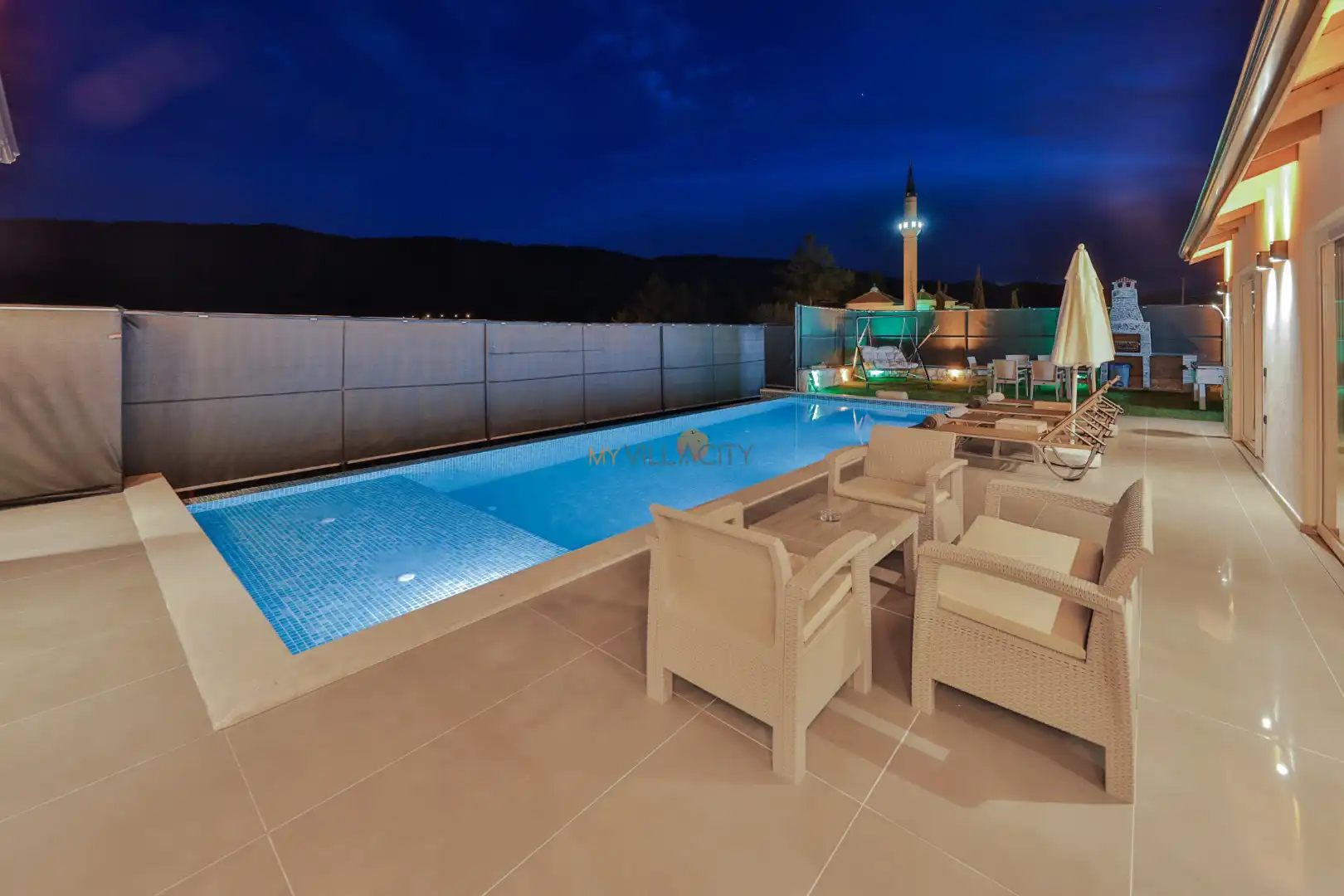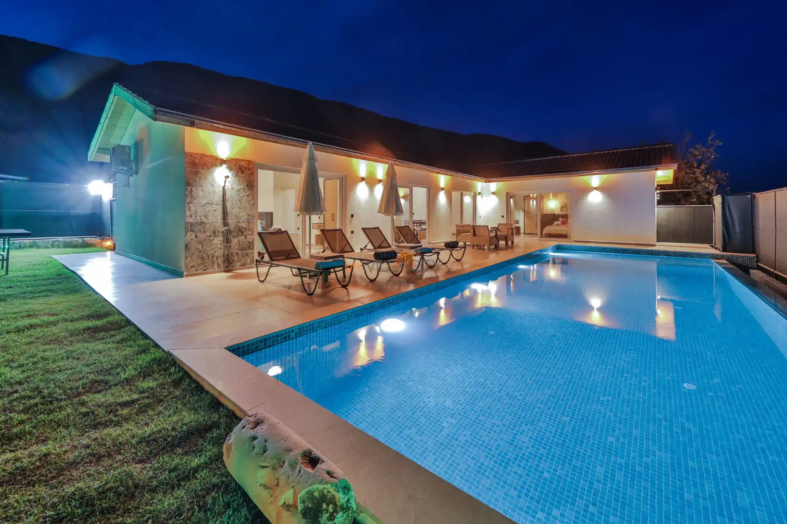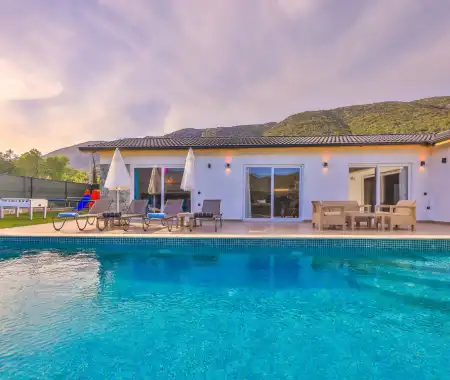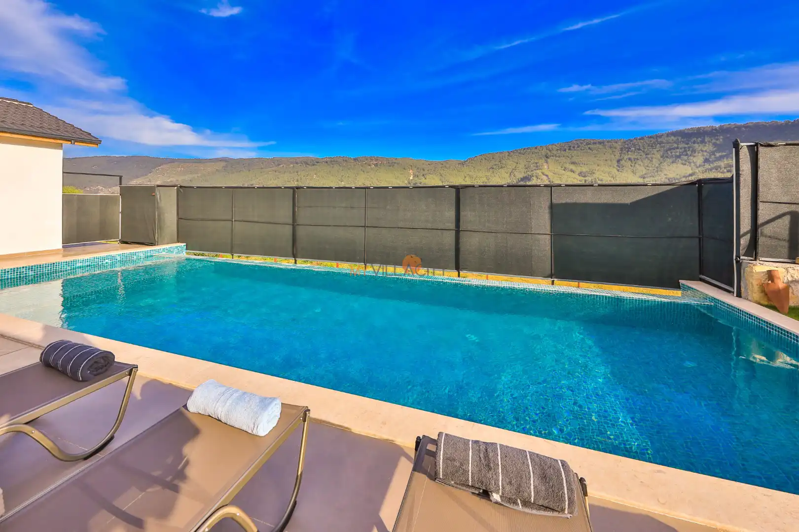 Villa Tawny , Kaş Kalkan Bölgesinde yer alan muhteşem bir tatil villasıdır. Bu villa, 2 yatak odası ve 4 kişilik kapasiteye sahiptir. Özellikle muhafazakar aileler ve balayı çiftleri için ideal bir seçenektir. Havuz alanı tamamen korunaklıdır ve misafirlerin mahremiyetine önem verilmektedir. Yatak odasında özel banyo ve tuvalet bulunmaktadır.Ayrıca yatak odasında jakuzi bulunmaktadır. Villamızın lüks ve konforlu tasarımı göz kamaştırmaktadır. Havuz terasımız oldukça geniştir ve bu alanda keyifli vakit geçirebilirsiniz.Modern mobilyaları,şık dekarasyonu,modern ile ön plana çıkmaktadır. İhtiyaç duyabileceğiniz tüm temel araç ve gereçler villada mevcuttur. Doğayla iç içe, sakin ve huzurlu bir tatil isteyen misafirlerimiz için mükemmel bir seçimdir.Unutulmaz bir tatil içim Villa Tawny ,tam da bunun için var.