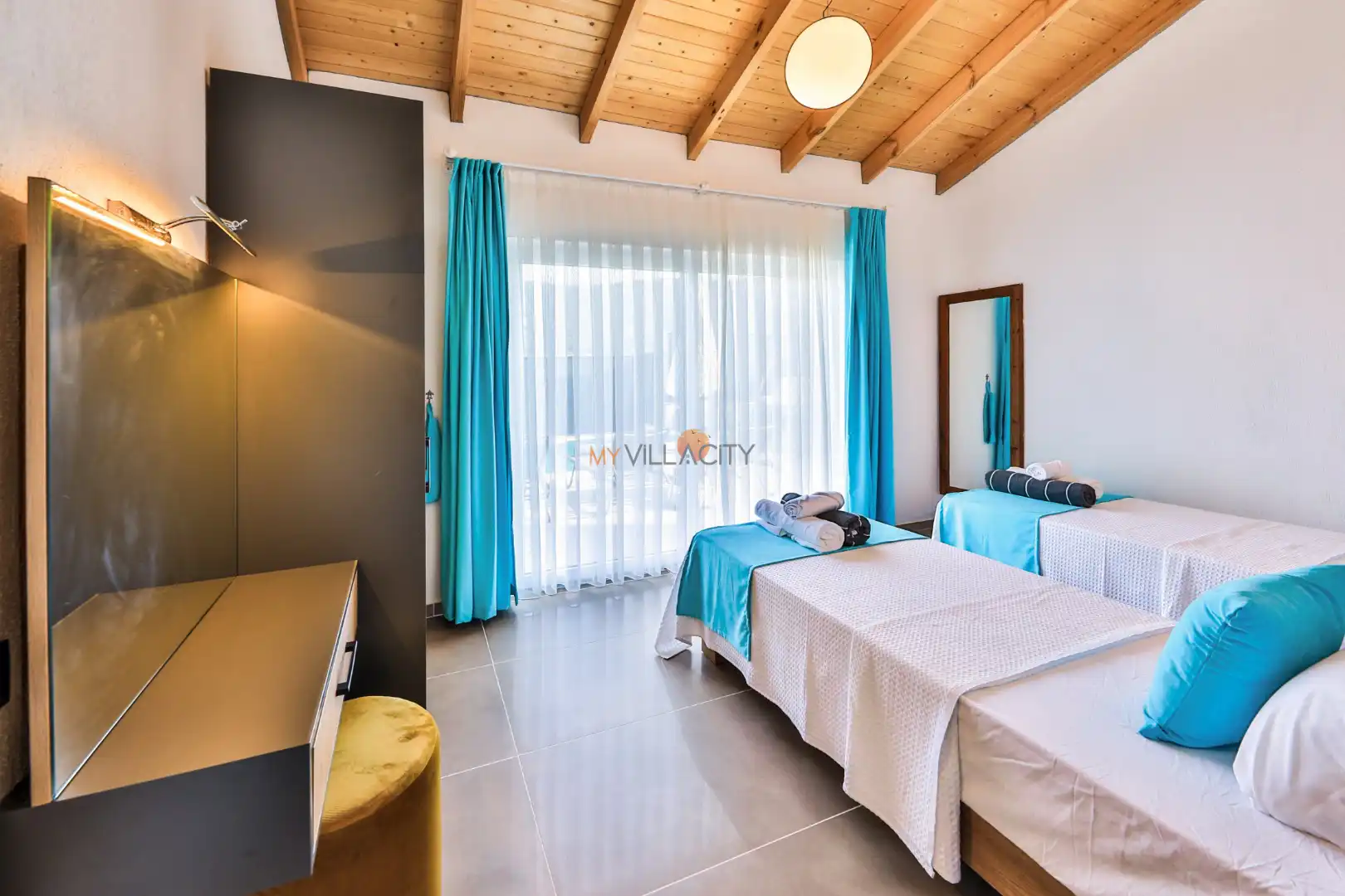 - 2 Tek Kişilik Yatak, 1 Banyo/WC, 2 Komodin, Elbise dolabı, Makyaj Masası, Klima,