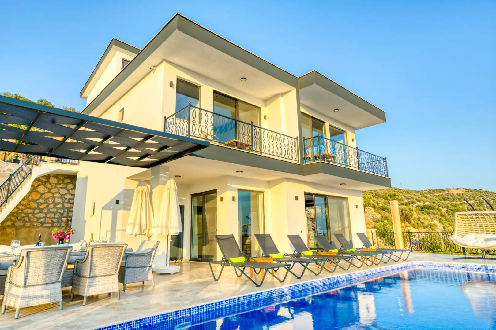Kalkan'ın huzurlu bulunan Villa Yıldız 2, modern tasarımı ve özel havuzu ile dikkat çekiyor. doğa manzaralı konumu ile benzersiz bir tatil vaat ediyor. Tam donanımlı mutfak, geniş yaşam alanları ve konforlu yatak odalarıyla, unutulmaz bir Kalkan tatili için idealdir.