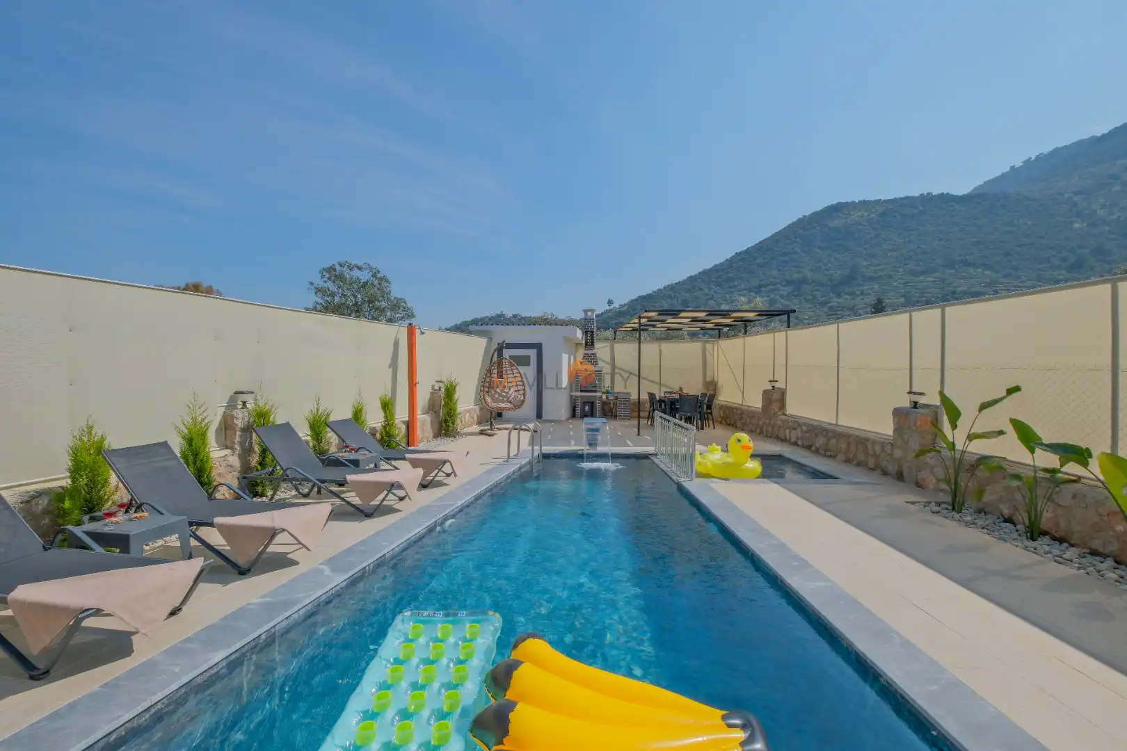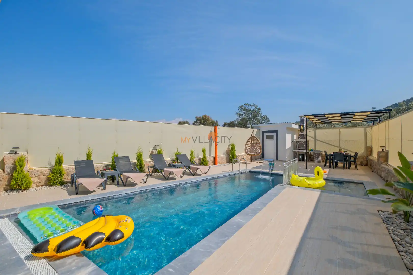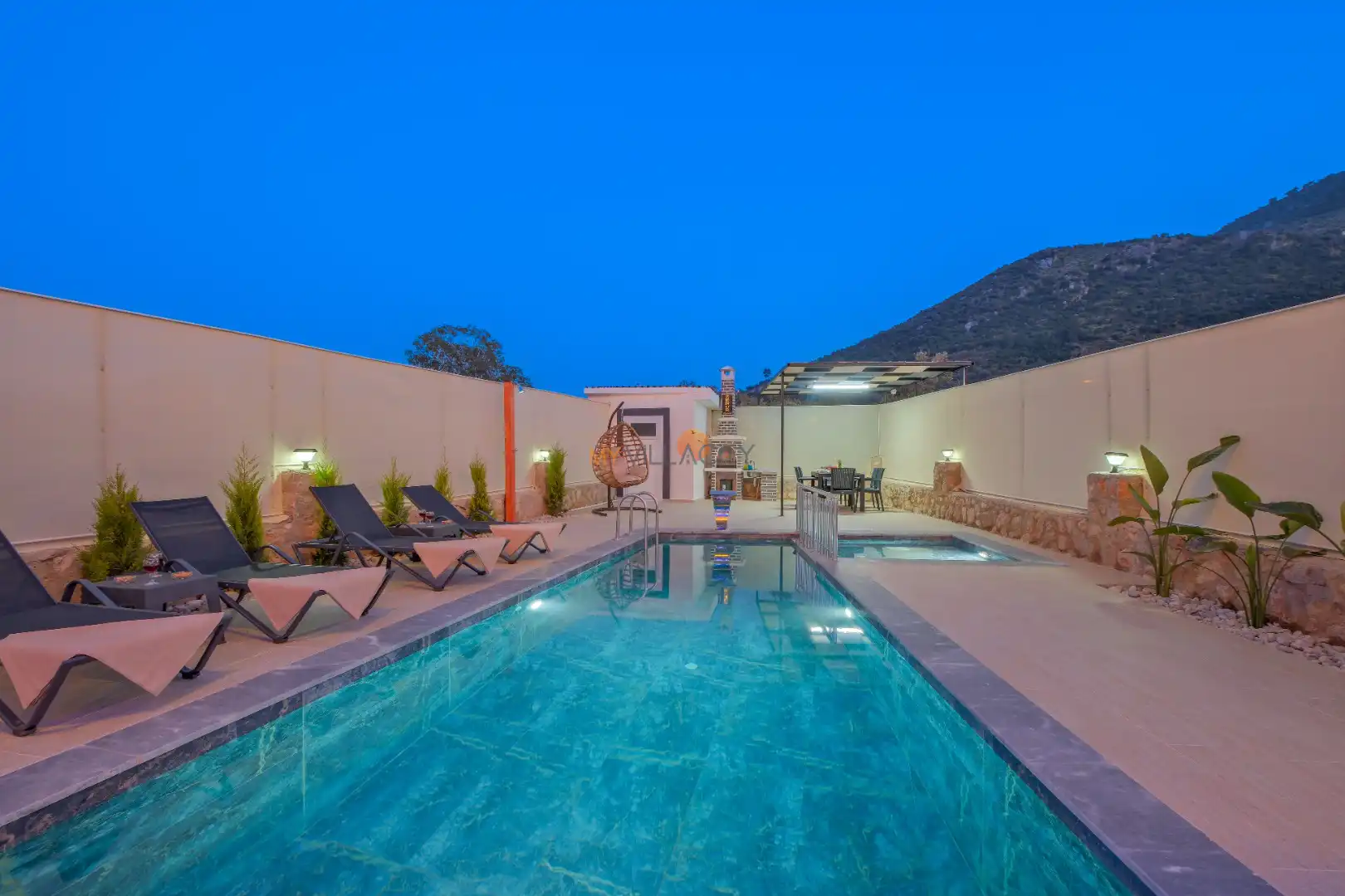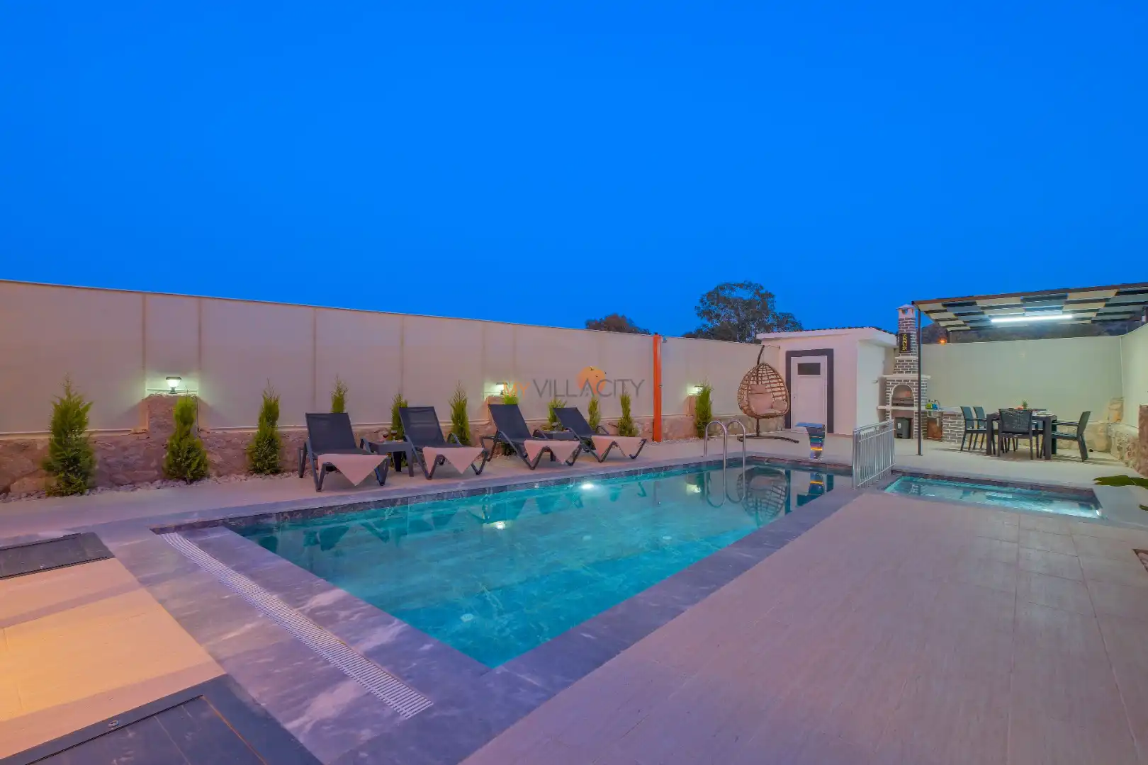 Tam korunaklı yapısı sayesinde dışarıdan görünmeyen özel yüzme havuzu ve geniş bahçesi, özellikle muhafazakar aileler için güvenli ve huzurlu bir tatil ortamı oluşturur. Gün boyu size ait havuzda keyif yapabilir, akşam saatlerinde ise bahçe terasında sevdiklerinizle birlikte keyifli vakit geçirebilirsiniz.