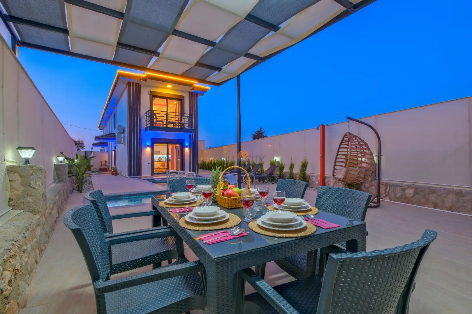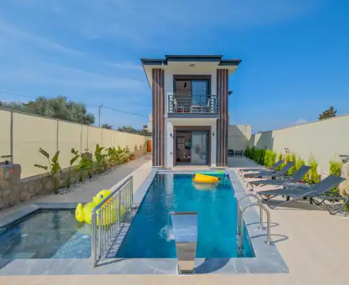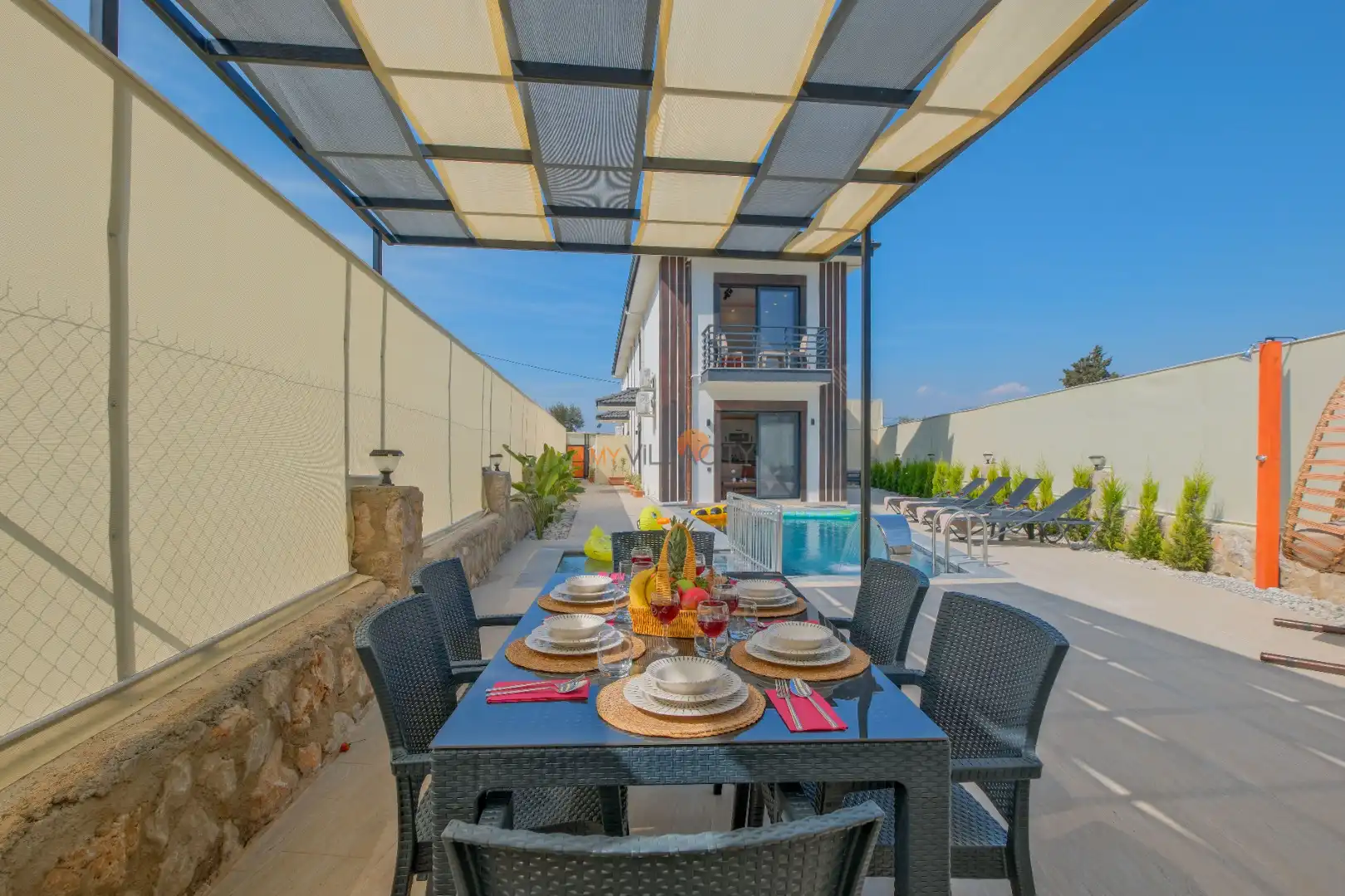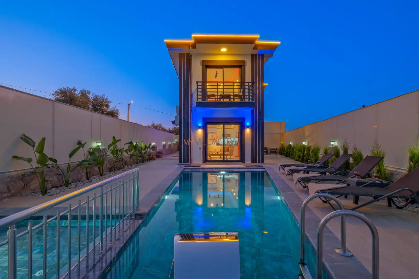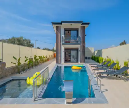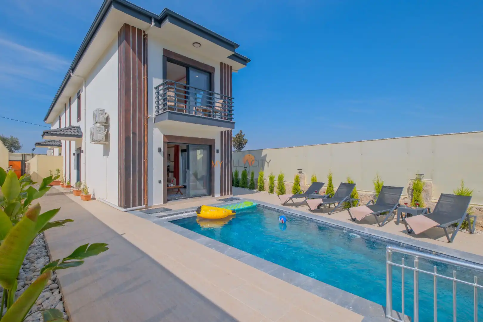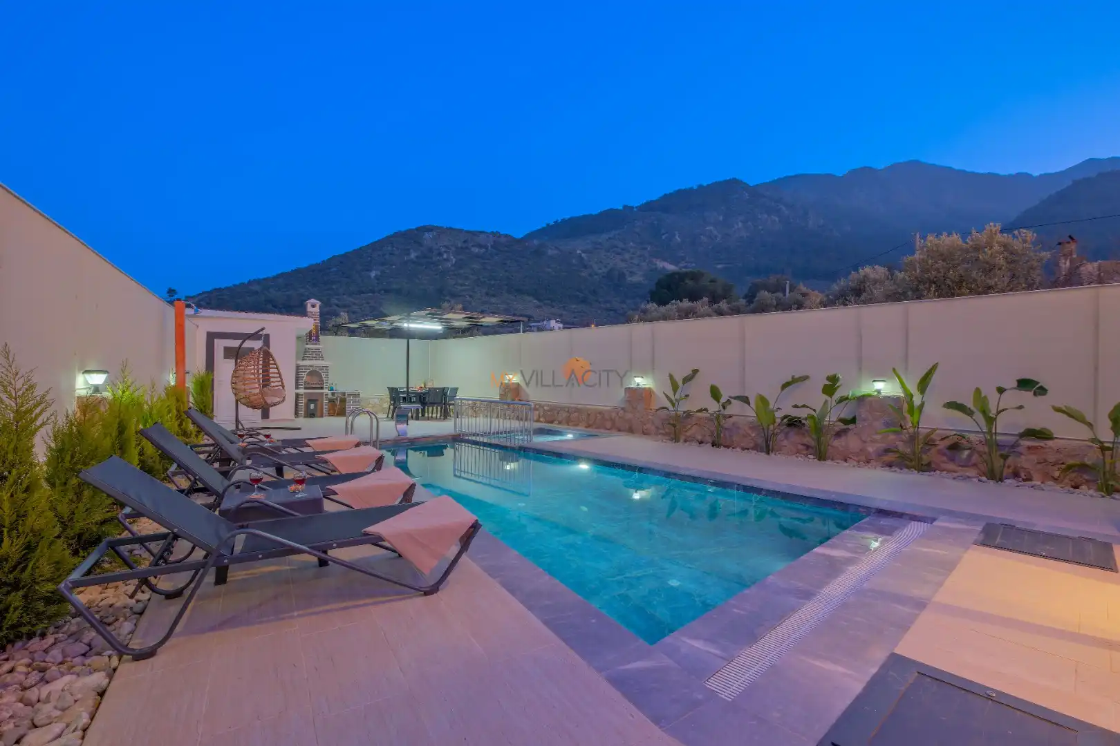 Tam korunaklı yapısı sayesinde dışarıdan görünmeyen özel yüzme havuzu ve geniş bahçesi, özellikle muhafazakar aileler için güvenli ve huzurlu bir tatil ortamı oluşturur. Gün boyu size ait havuzda keyif yapabilir, akşam saatlerinde ise bahçe terasında sevdiklerinizle birlikte keyifli vakit geçirebilirsiniz.
