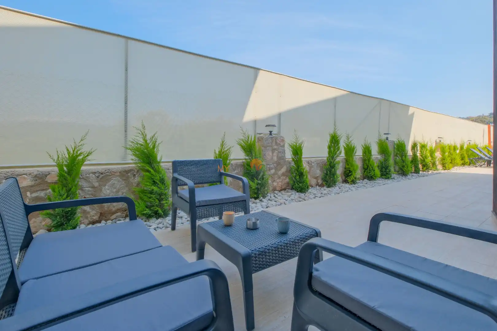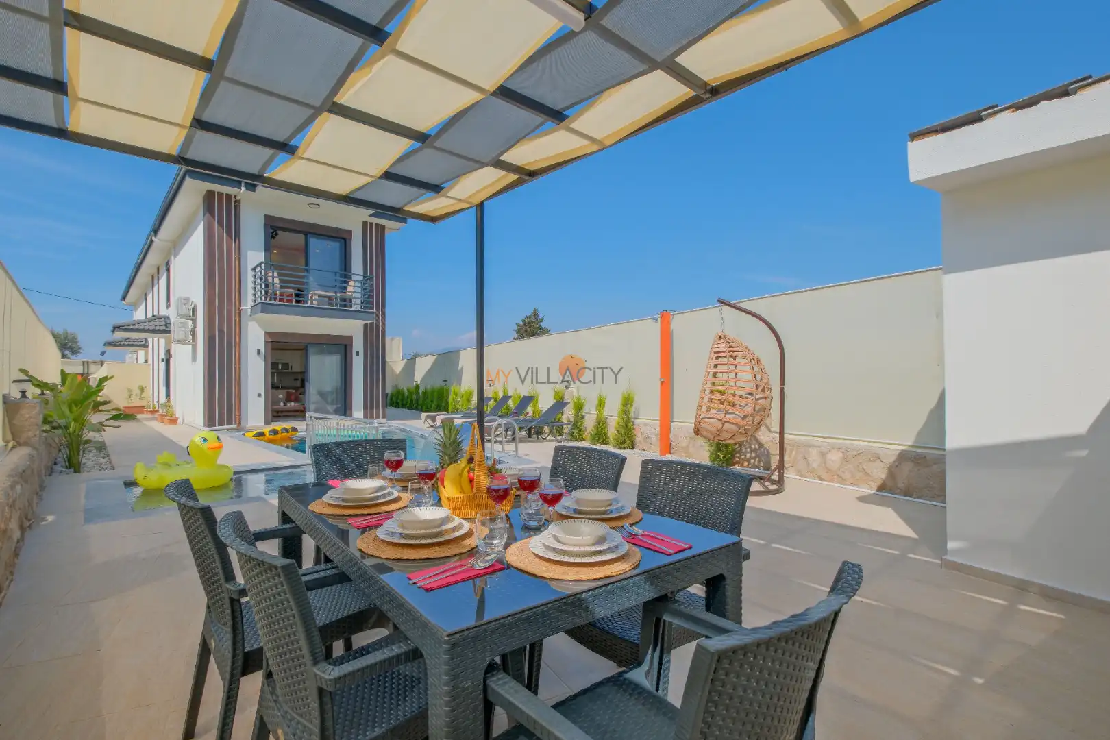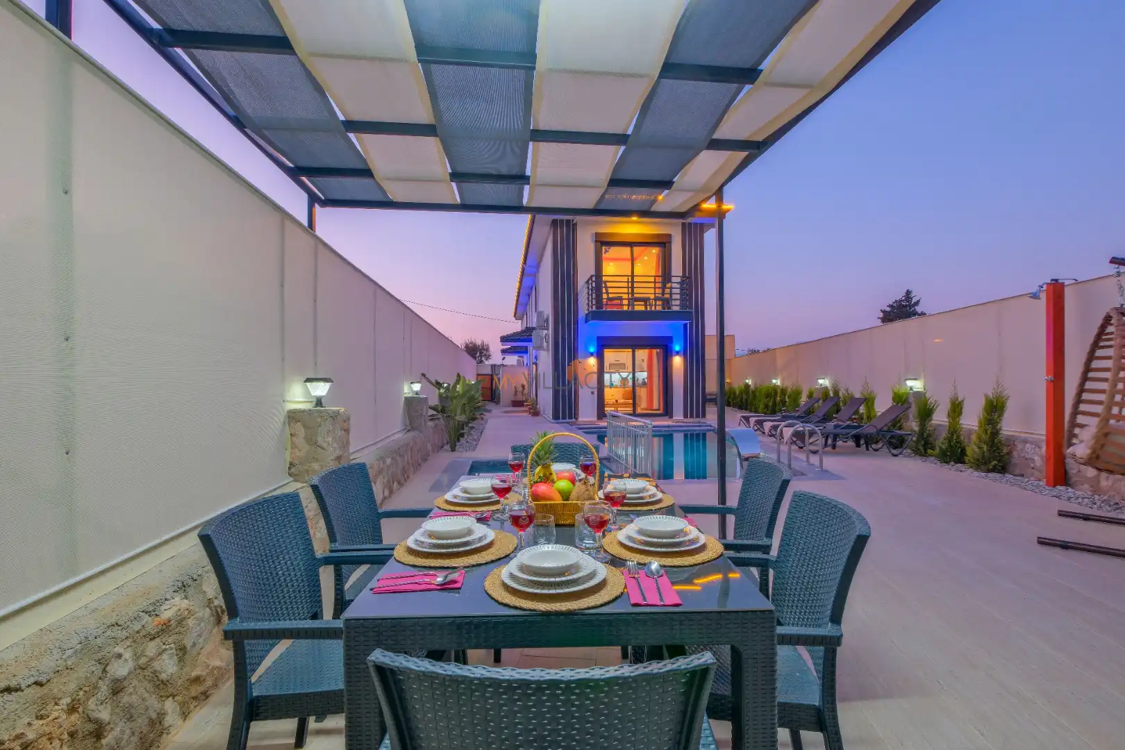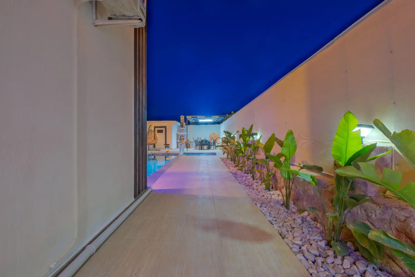 Tam korunaklı yapısı sayesinde dışarıdan görünmeyen özel yüzme havuzu ve geniş bahçesi, özellikle muhafazakar aileler için güvenli ve huzurlu bir tatil ortamı oluşturur. Gün boyu size ait havuzda keyif yapabilir, akşam saatlerinde ise bahçe terasında sevdiklerinizle birlikte keyifli vakit geçirebilirsiniz.