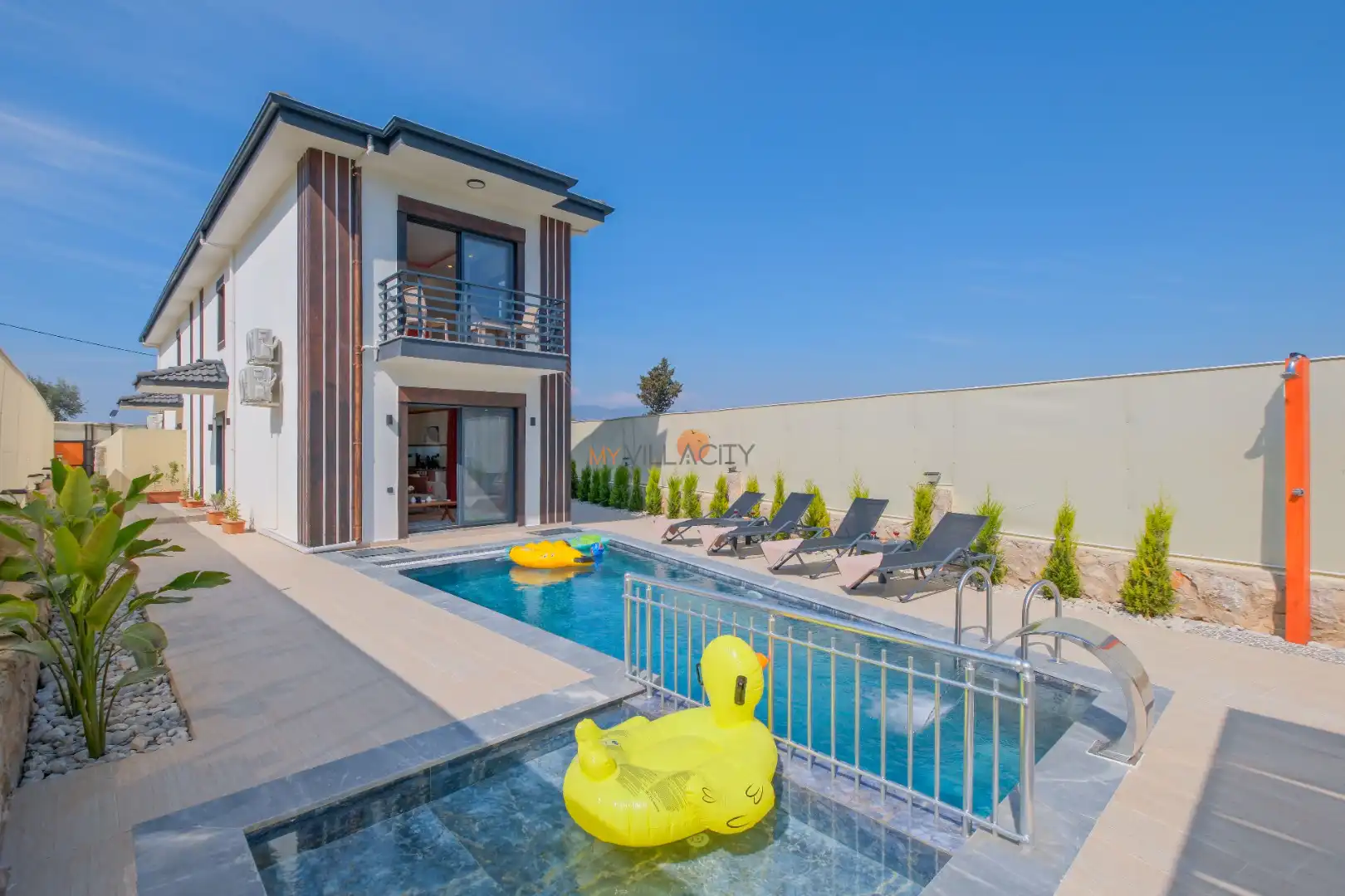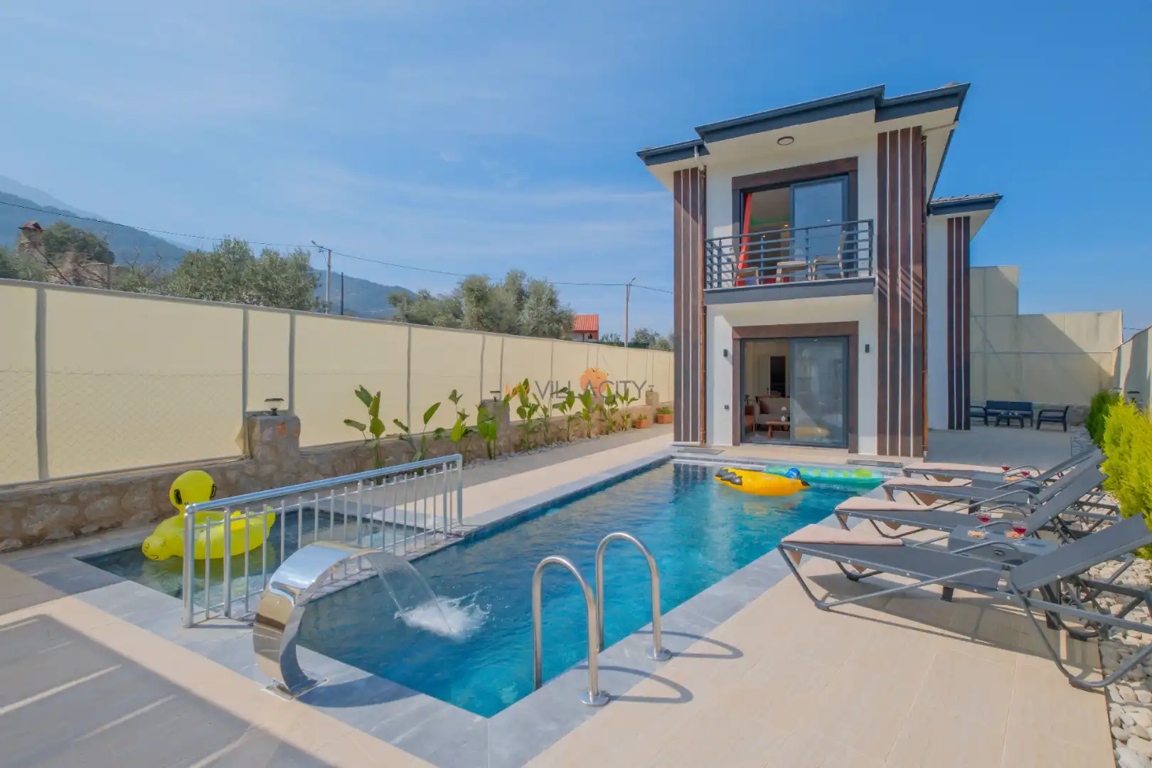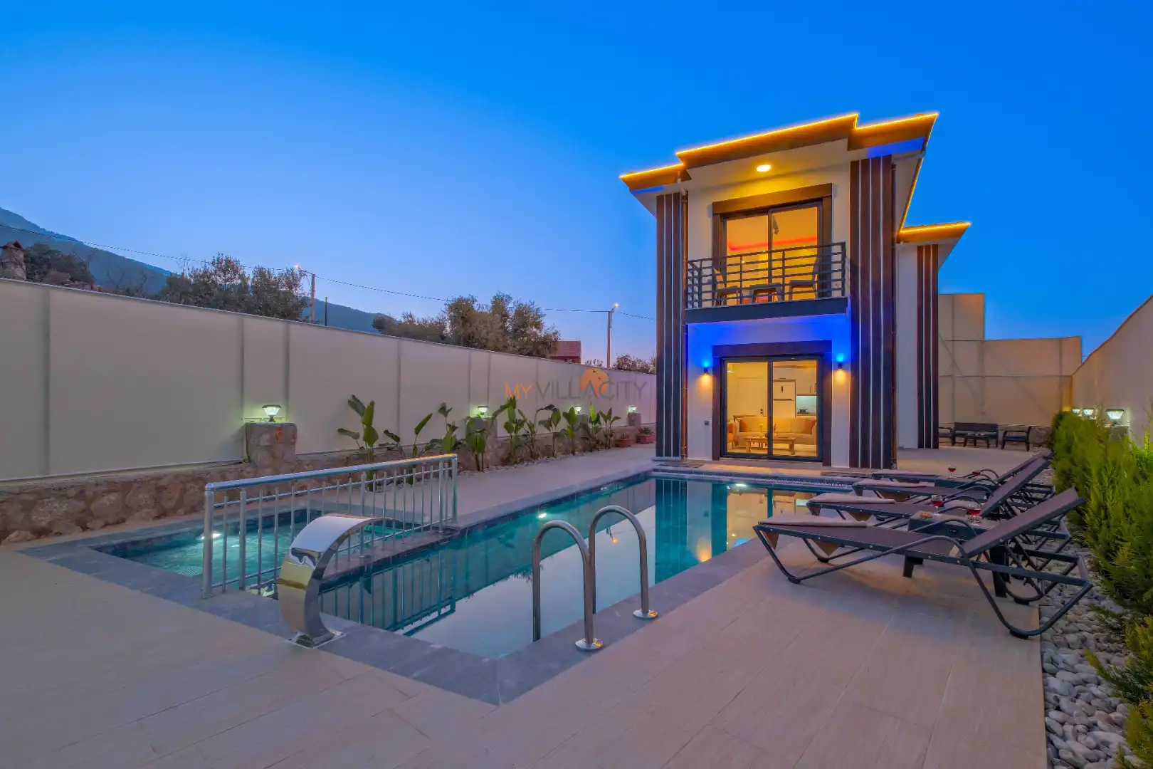 Myvillacity ayrıcalığıyla sunulan Villa Zenur 2, Fethiye’nin doğayla iç içe atmosferinde 2026 yılında hizmete giren, modern mimarisi ve üst düzey konforu ile öne çıkan özel bir tatil villasıdır. 3+1 yapısı ve 6 kişilik kapasitesiyle geniş aileler ve arkadaş grupları için ideal bir konaklama imkanı sunar.