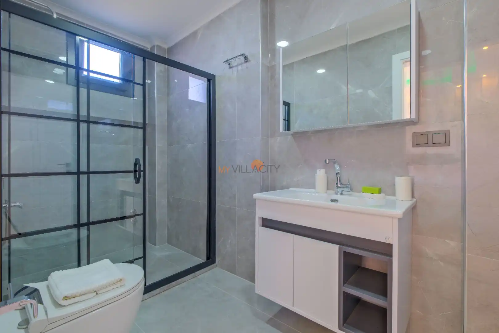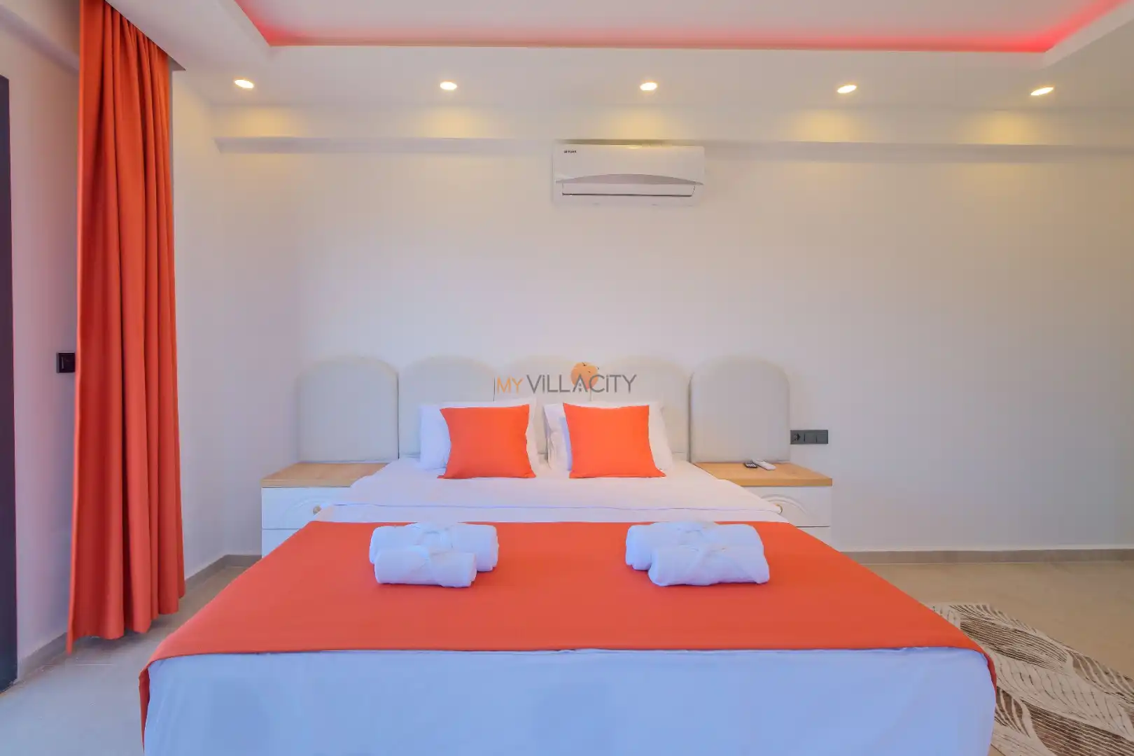 Villada bulunan 3 yatak odasının tamamı ebeveyn banyolu olarak tasarlanmış olup, her misafire özel alan ve maksimum konfor sağlar. Ferah iç mekanları, şık dekorasyonu ve yepyeni eşyalarıyla lüks ve rahatlık bir arada sunulmaktadır.