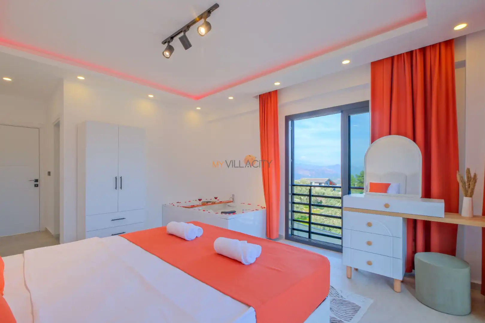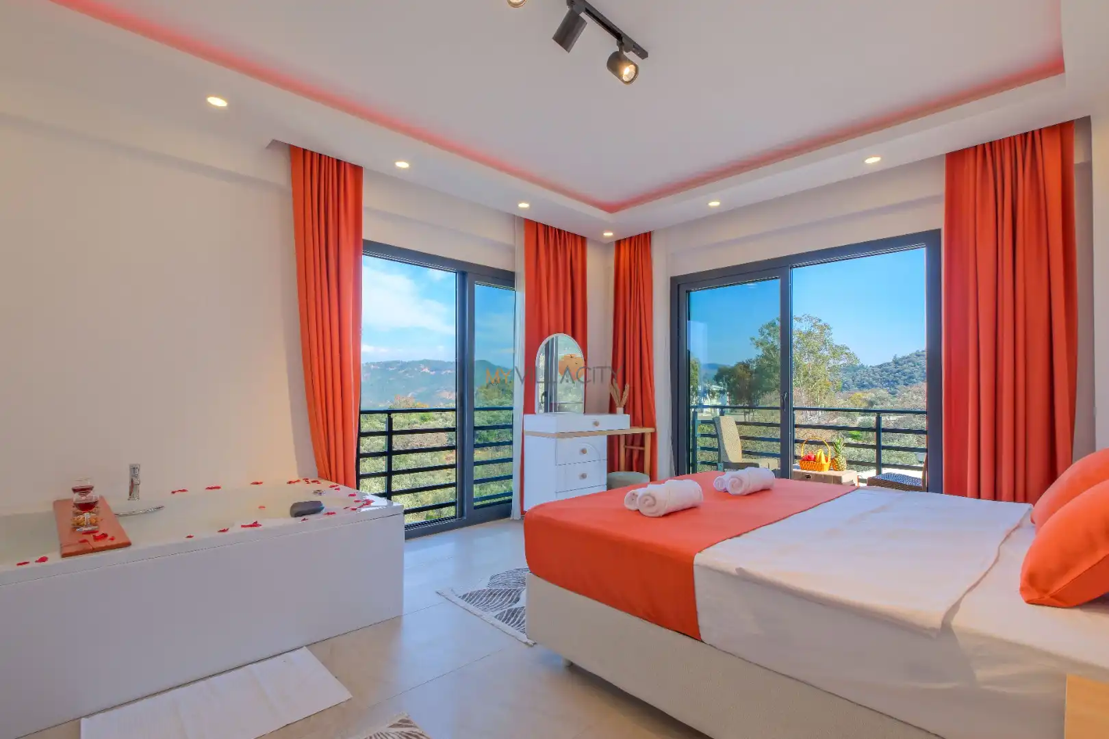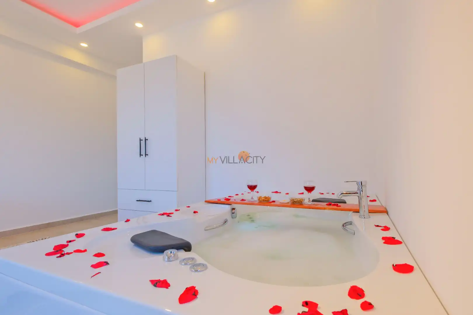 - 1 Çift Kişilik Yatak, 1 Jakuzi, 1 Banyo/WC, 2 Komodin, Elbise dolabı, Makyaj Masası, Klima,