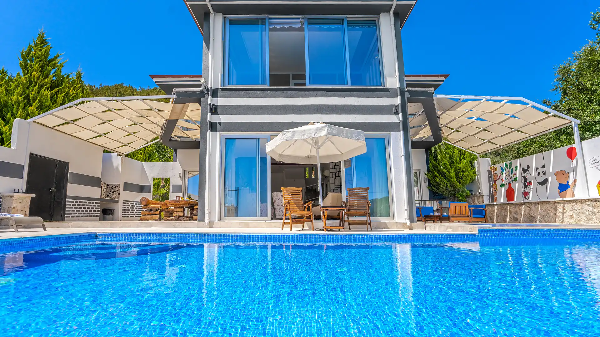 Villa Zilan , Kaş Kalkan Bölgesinde yer alan muhteşem bir tatil villasıdır. Bu villa, 4 yatak odası ve 8 kişilik kapasiteye sahiptir. Özellikle muhafazakar aileler ve geniş aileler için ideal bir seçenektir. Havuz alanı tamamen korunaklıdır ve misafirlerin mahremiyetine önem verilmektedir. Yatak odasında özel banyo ve tuvalet bulunmaktadır.Ayrıca yatak odasında jakuzi bulunmaktadır. Villamızın lüks ve konforlu tasarımı göz kamaştırmaktadır. .Havuz terasımız oldukça geniştir ve bu alanda keyifli vakit geçirebilirsiniz.Modern mobilyaları,şık dekarasyonu,modern ile ön plana çıkmaktadır. İhtiyaç duyabileceğiniz tüm temel araç ve gereçler villada mevcuttur. Villamızın havuz terasından doğa manzarasına sahip konumdadır.Doğayla iç içe, sakin ve huzurlu bir tatil isteyen misafirlerimiz için mükemmel bir seçimdir.Unutulmaz bir tatil içim Villa Zilan ,tam da bunun için var.